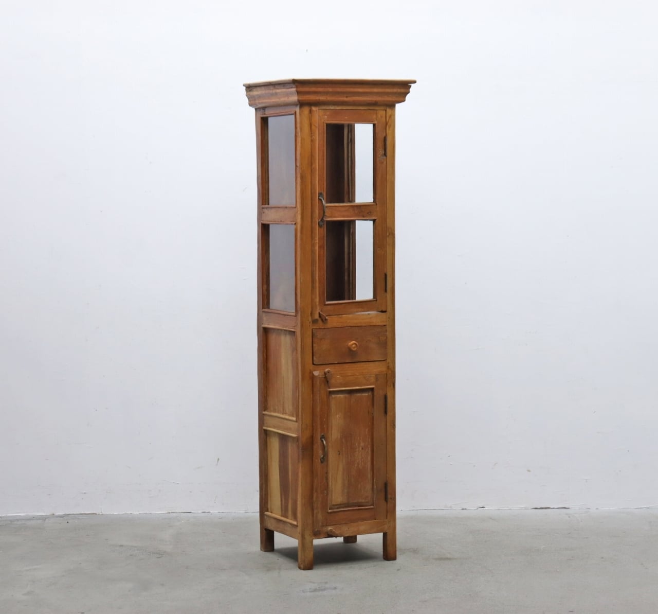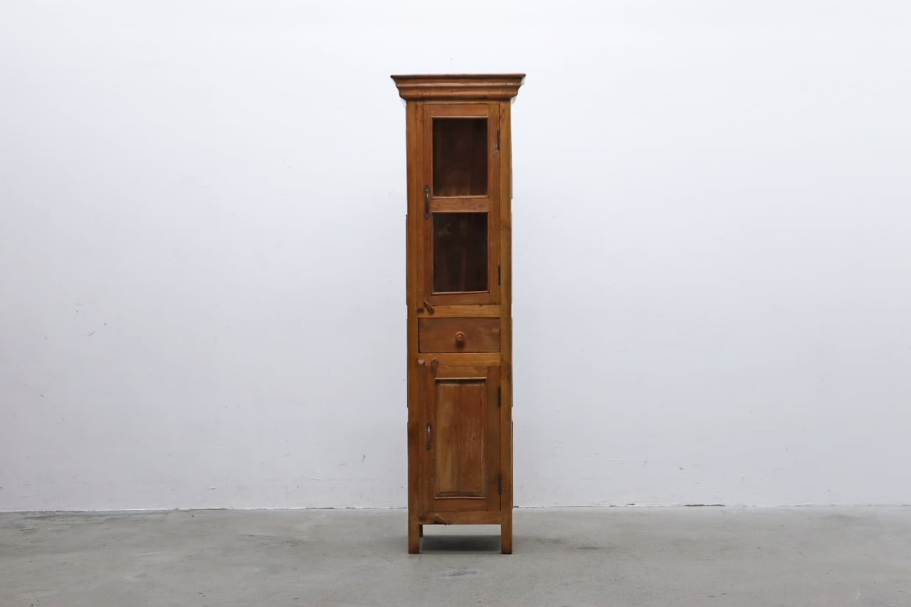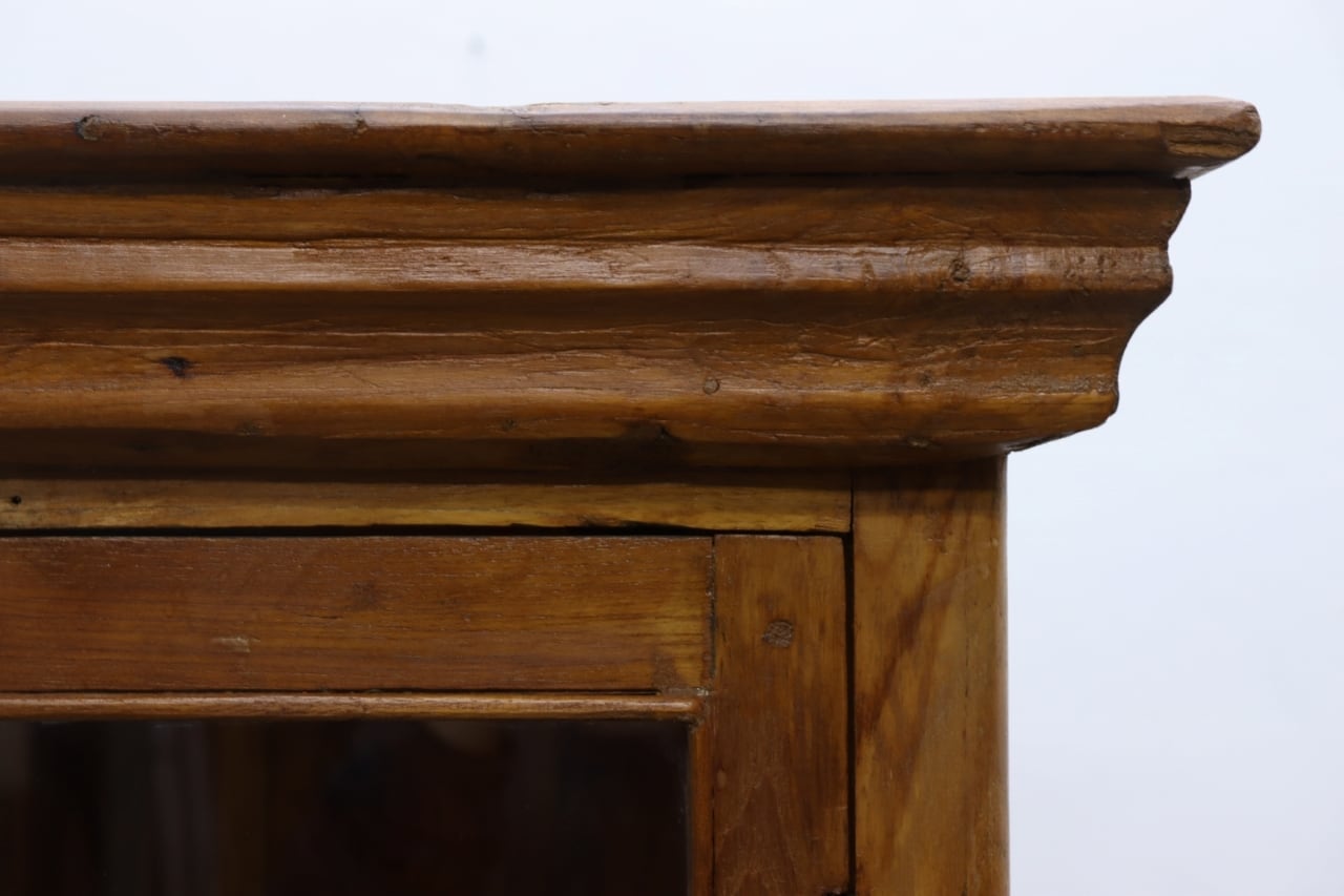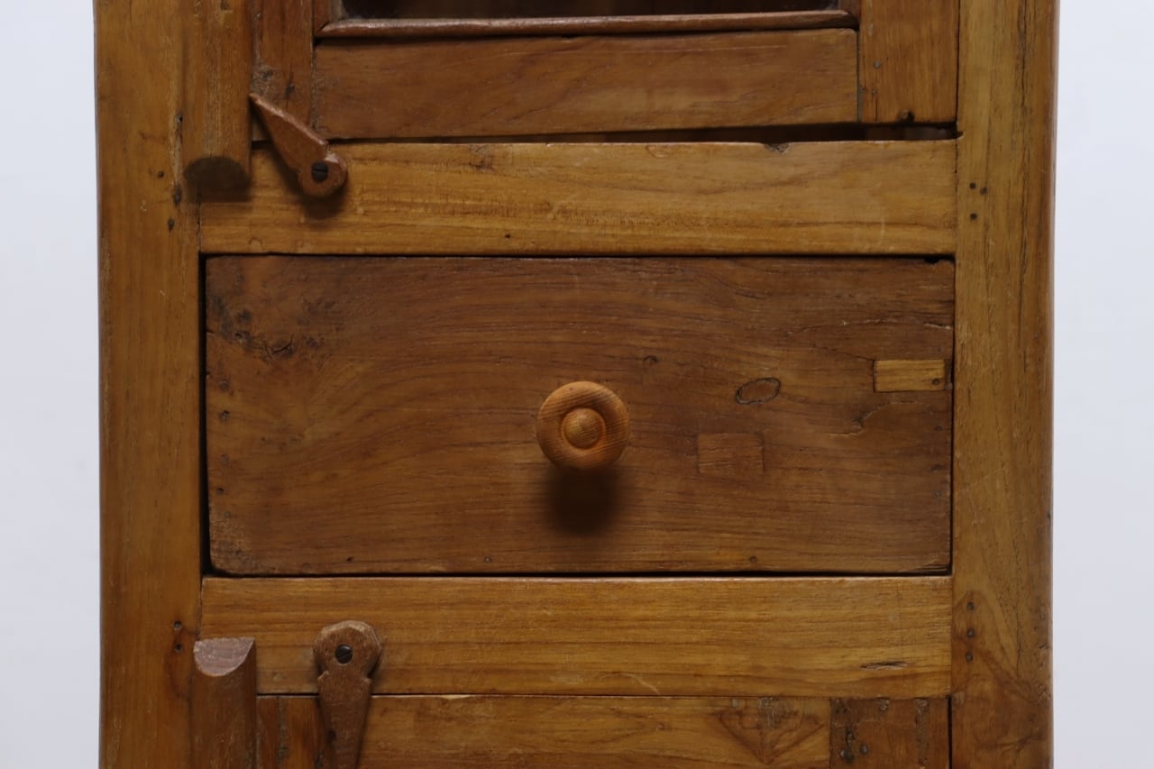 チーク無垢材 プリミティブ ガラス ショーケース キャビネット 飾り棚 食器棚 ラック リビング キッチン RCT
