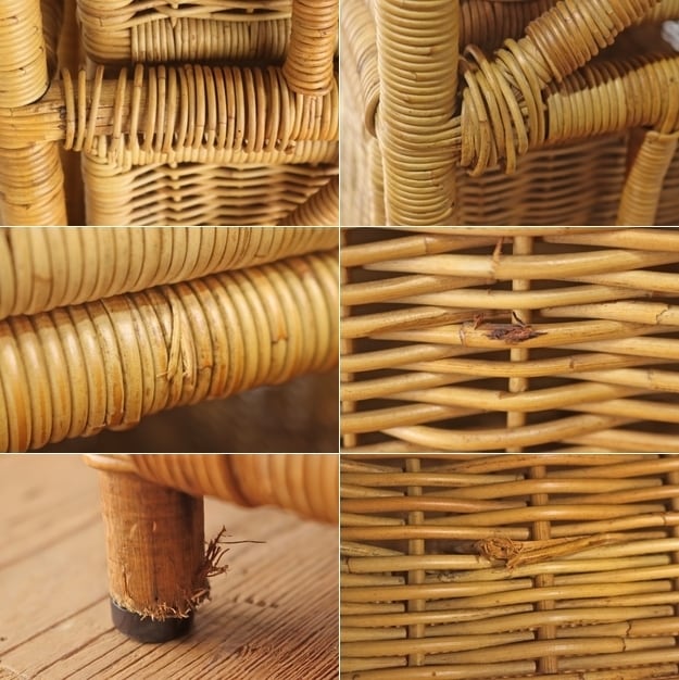 籐の編み目が切れていたり、緩んでいる箇所があります。