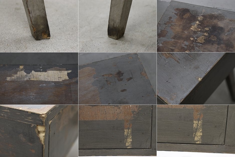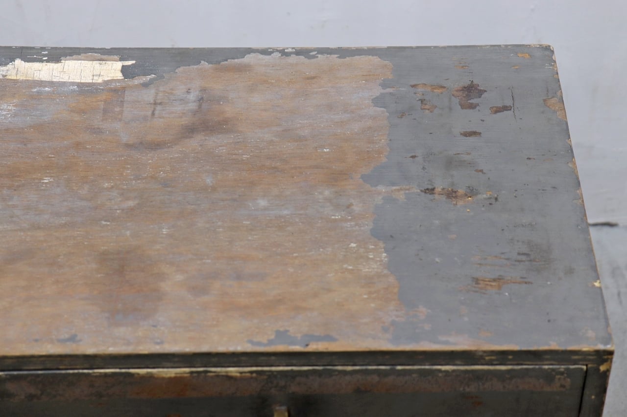 天板に合板の剥がれ、全体的に傷や擦れ、塗装の剥がれがあります。