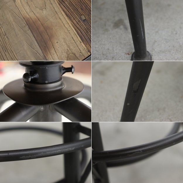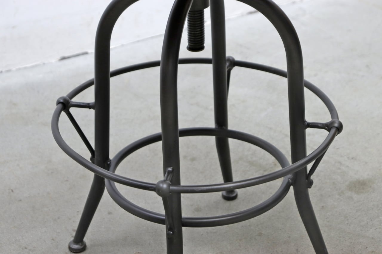 アイアンフレームにニレ無垢材の天板を組み合わせた無骨なデザイン。