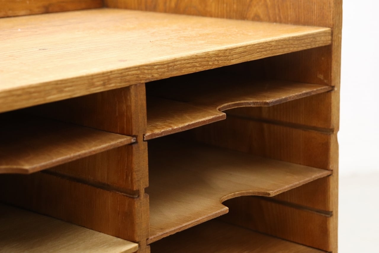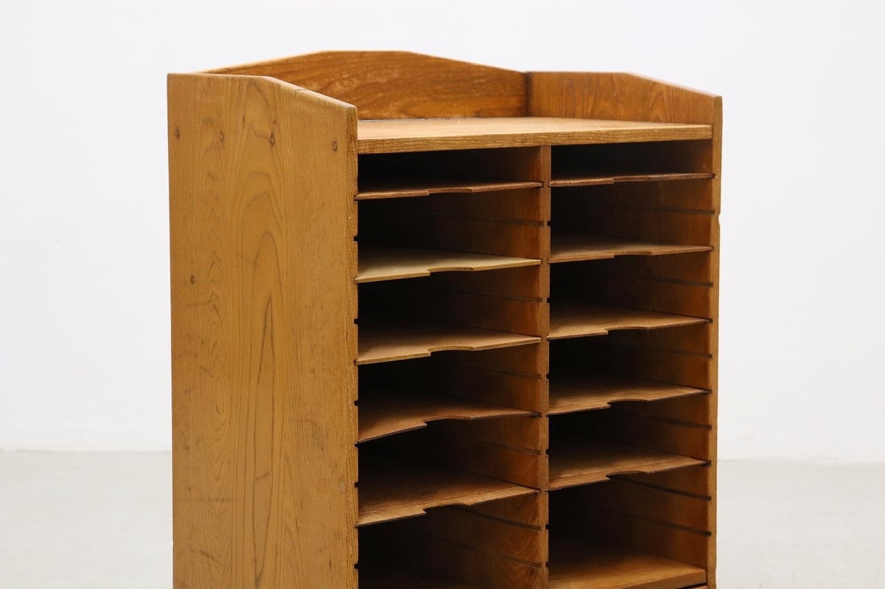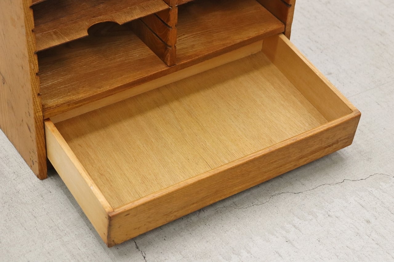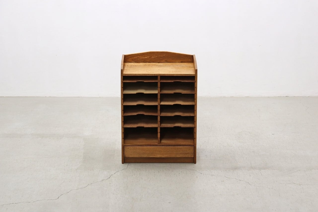 【沼津店】在庫2台 楢無垢材 レトロ 書類ケース レターラック カルテケース 収納棚 仕切り 整理 引き出し 抽斗 木製 ヴィンテージ RAT13074