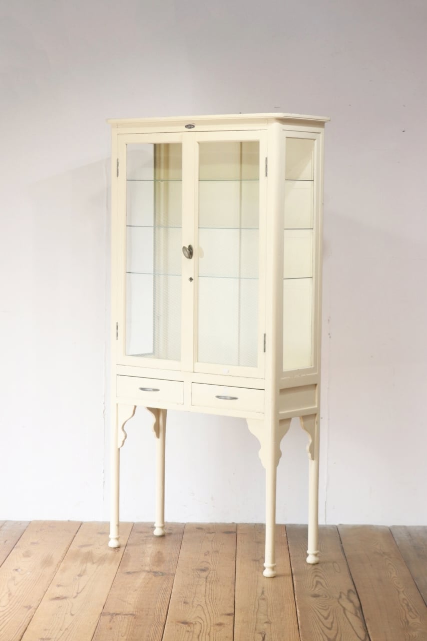 レトロ ヴィンテージ ケビント 収納 飾り棚 医療棚 キャビネット ディスプレイ ガラス棚板 扉 引き出し2杯/RCK11114