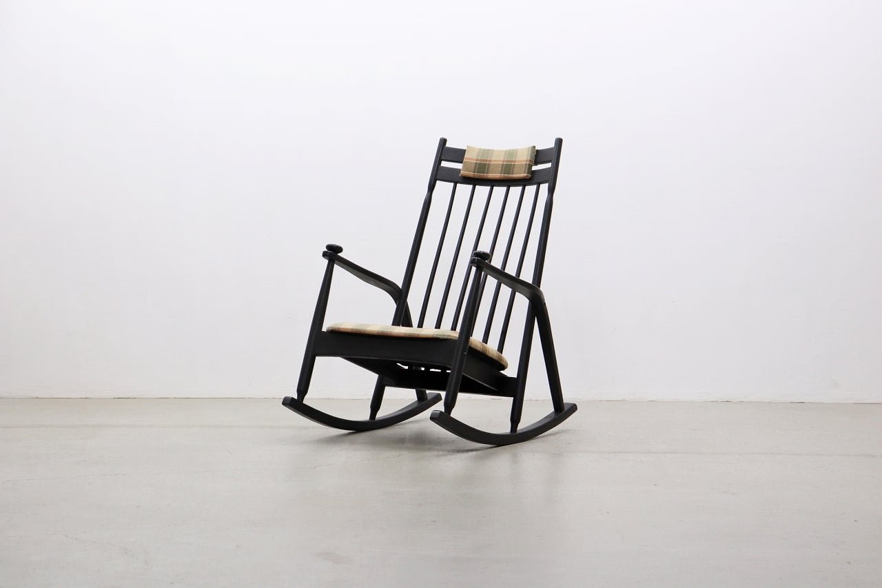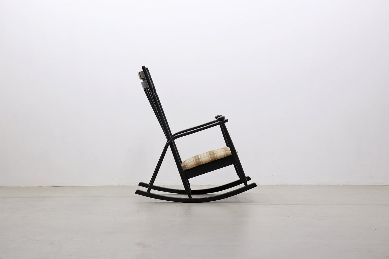 【沼津店】鳥取家具工業 ロッキングチェア ラウンジ 揺り椅子 ゆらゆら ファブリック チェック 黒 RCK16121