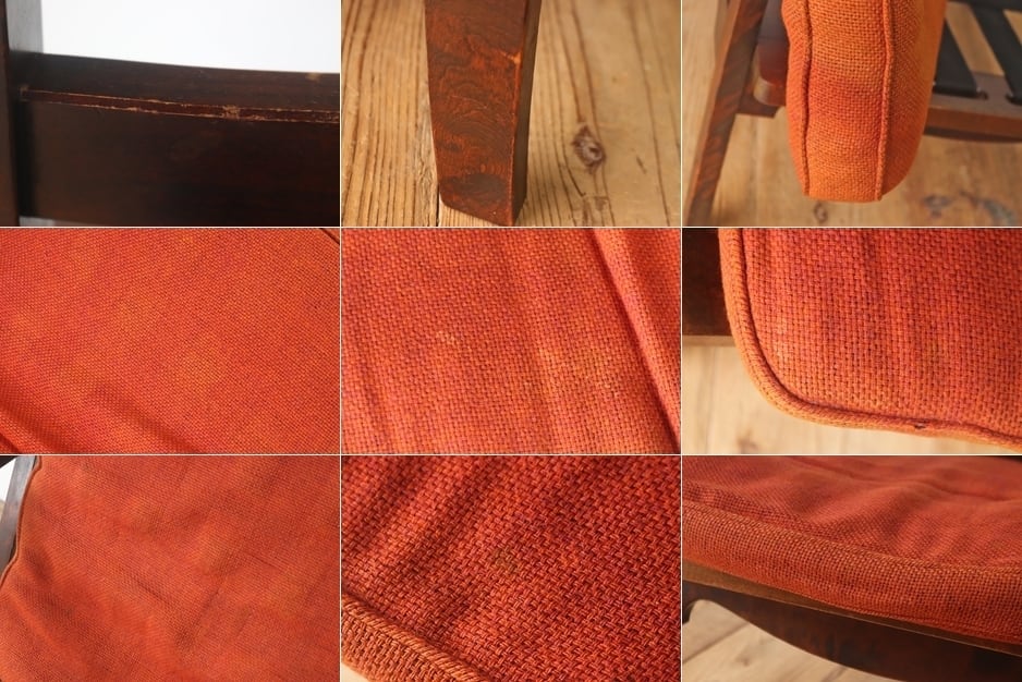 クッションにヘタリ、ファブリックに色褪せがあります。
