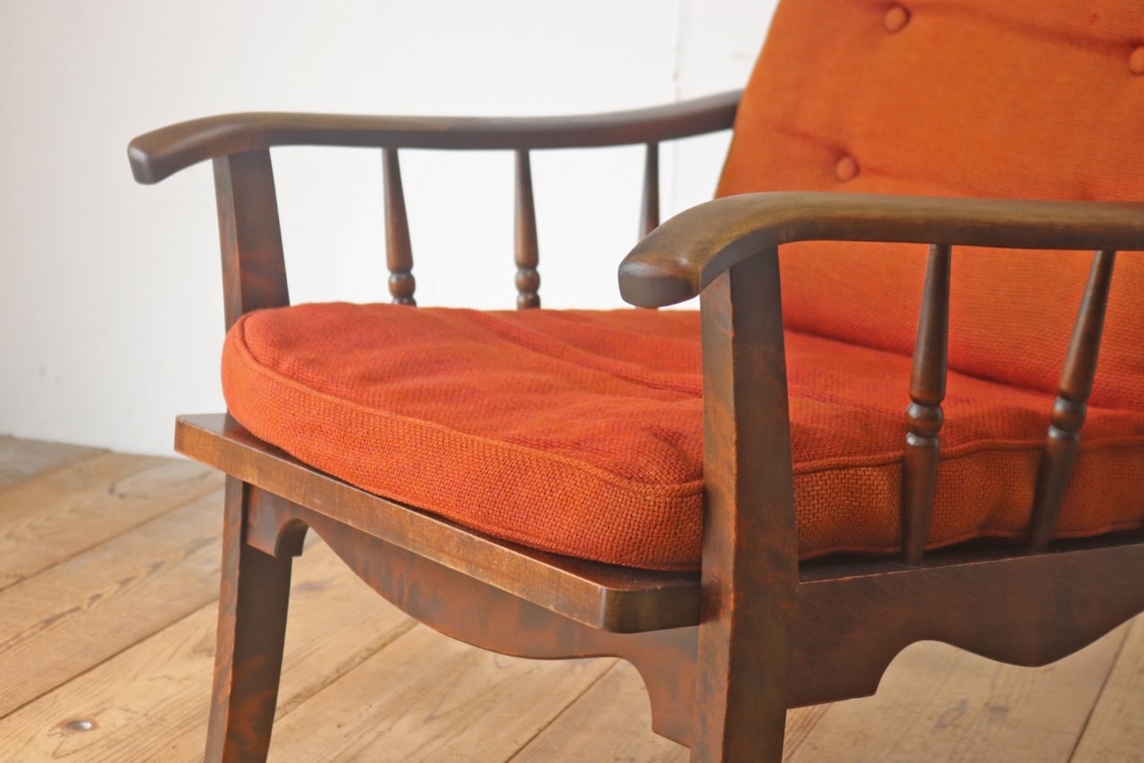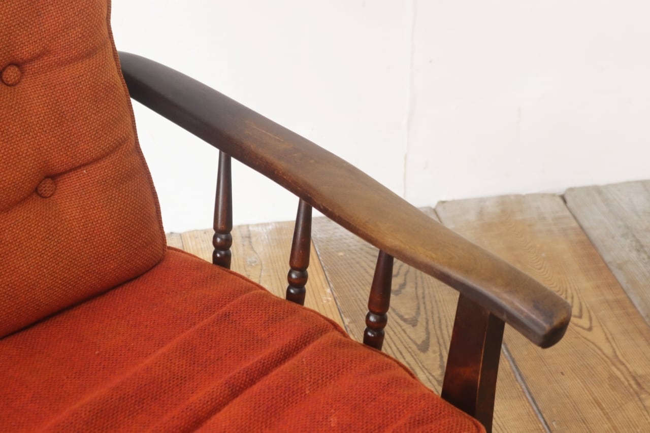北海道民芸家具 天然樺無垢材 1Pソファ ラウンジチェア 一人掛け 椅子 レトロ ファブリック ヴィンテージ/RCT31262
