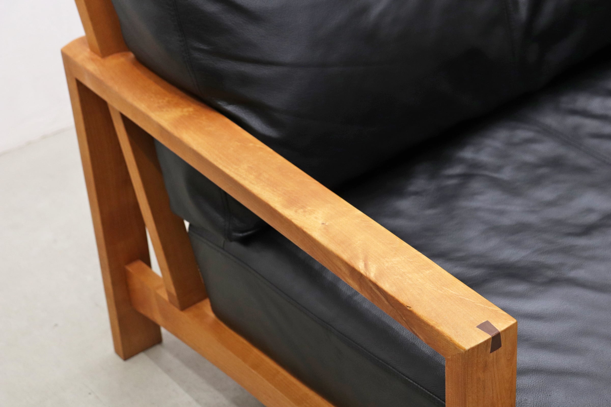 フレームにチェリー無垢材、シートに本革を使用。