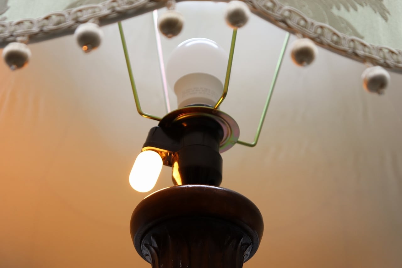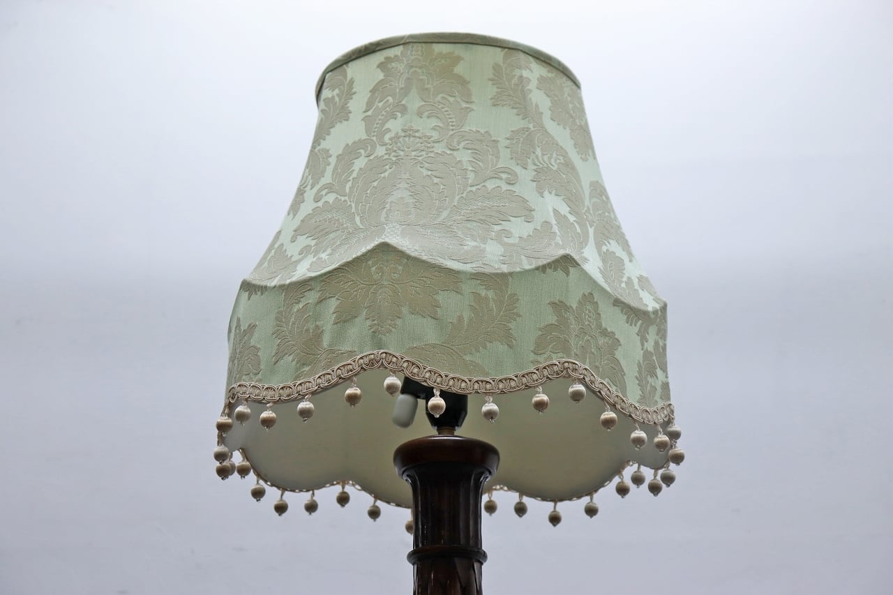 滑らかに削り出された猫脚と、花柄シェードがクラシカルな雰囲気。