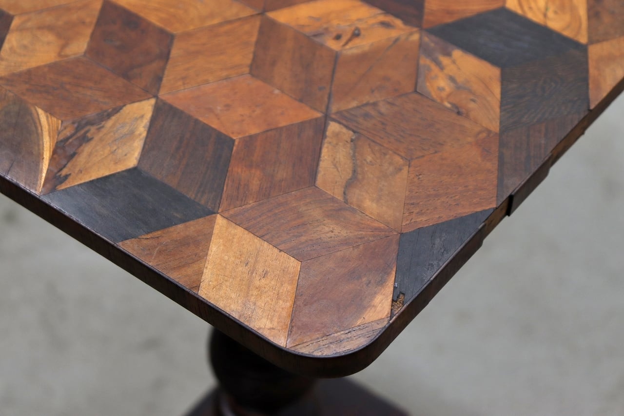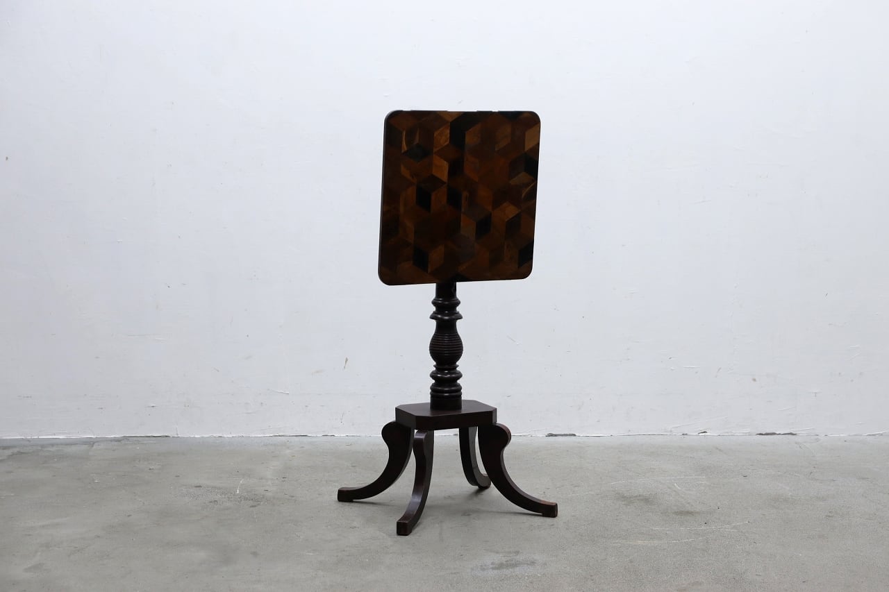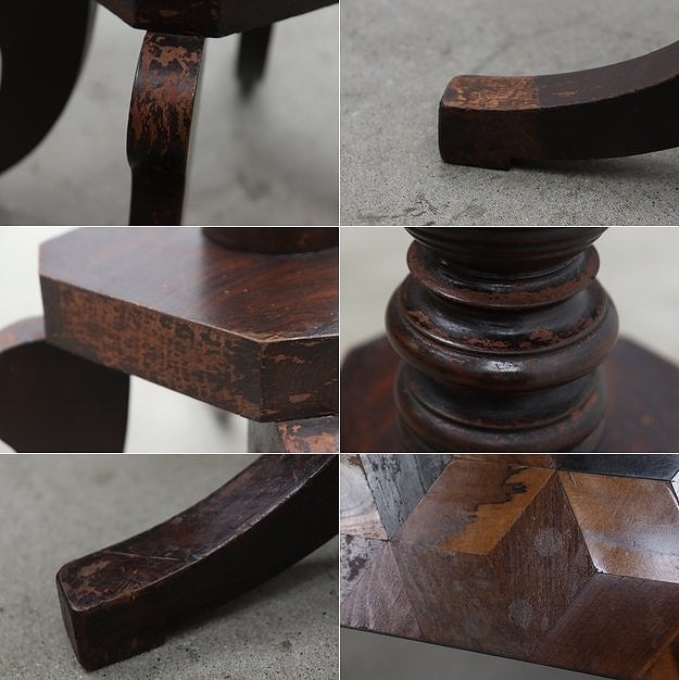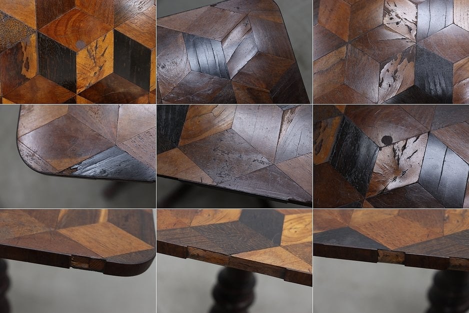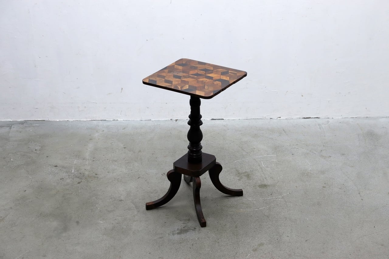 ヴィンテージ 寄木 幾何学模様 サイドテーブル ゲームテーブル 跳ね上げ式 猫脚 アンティーク