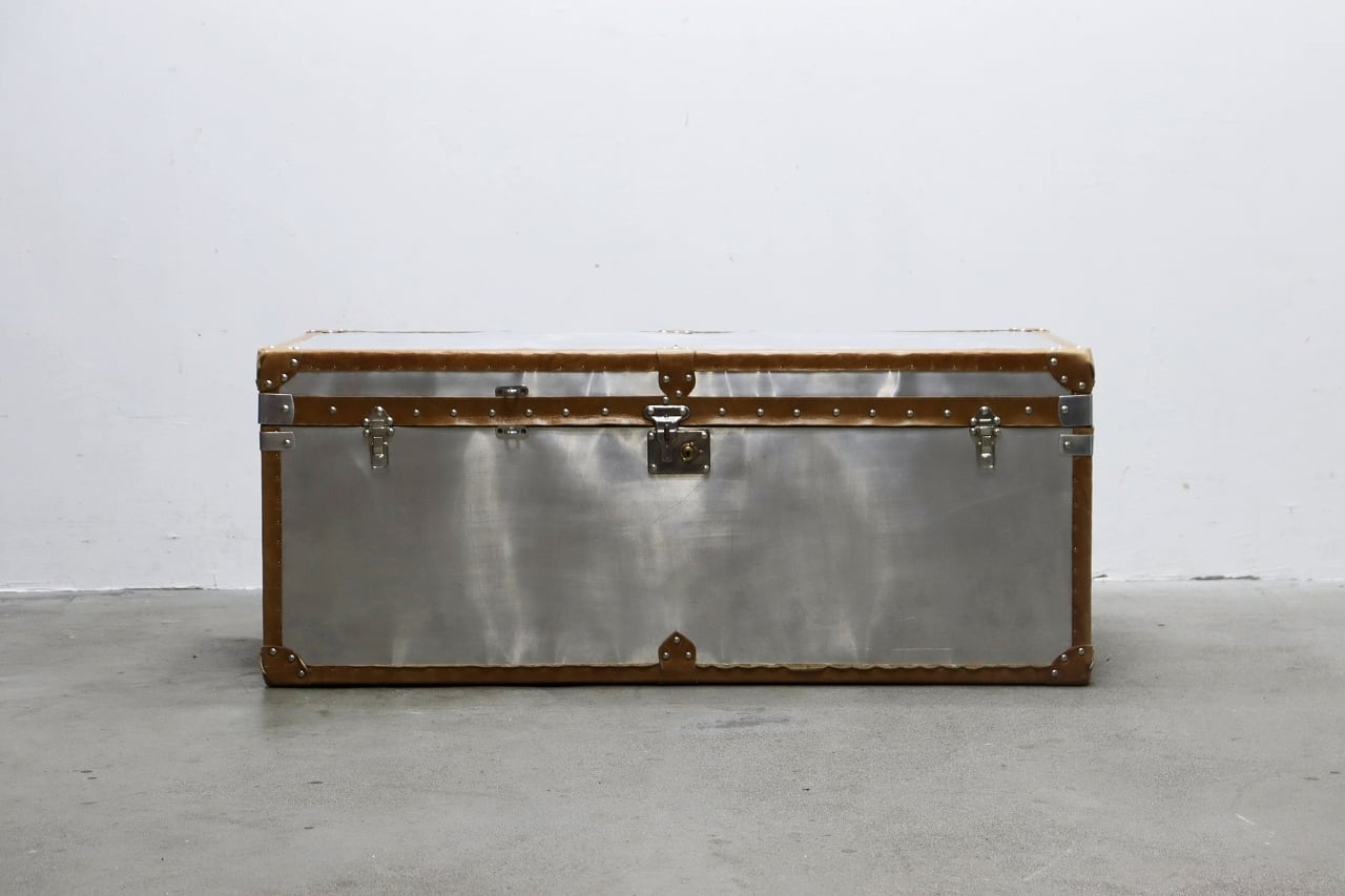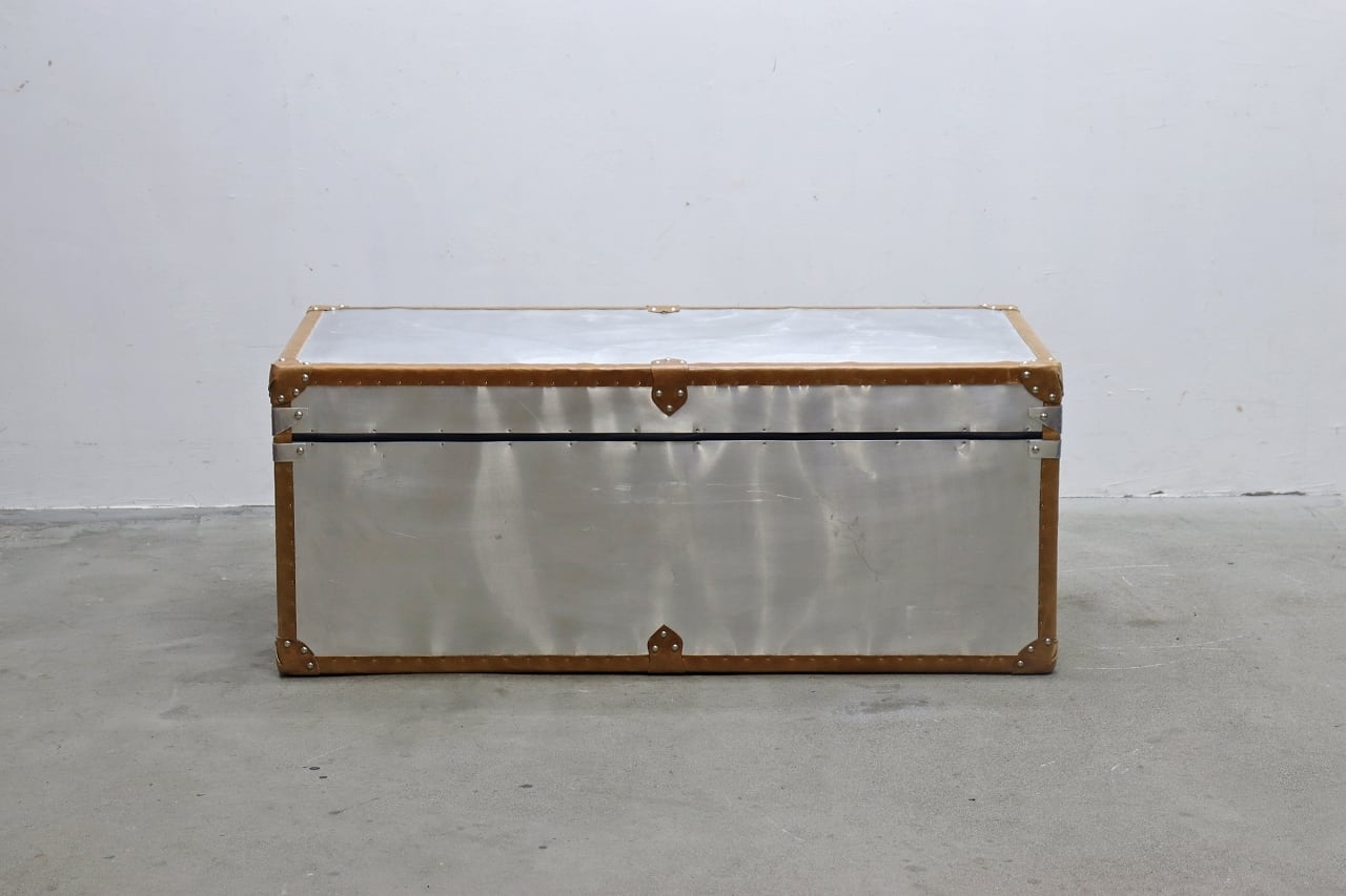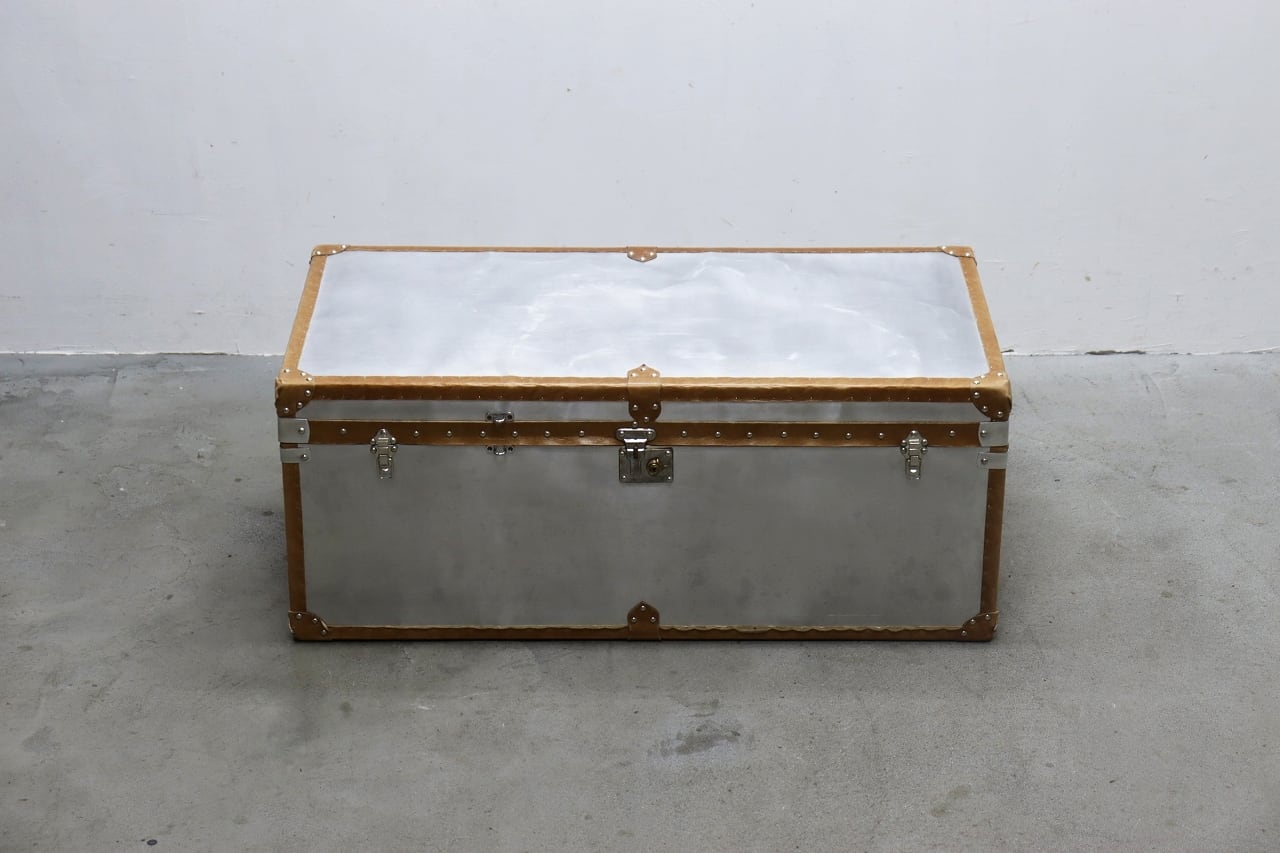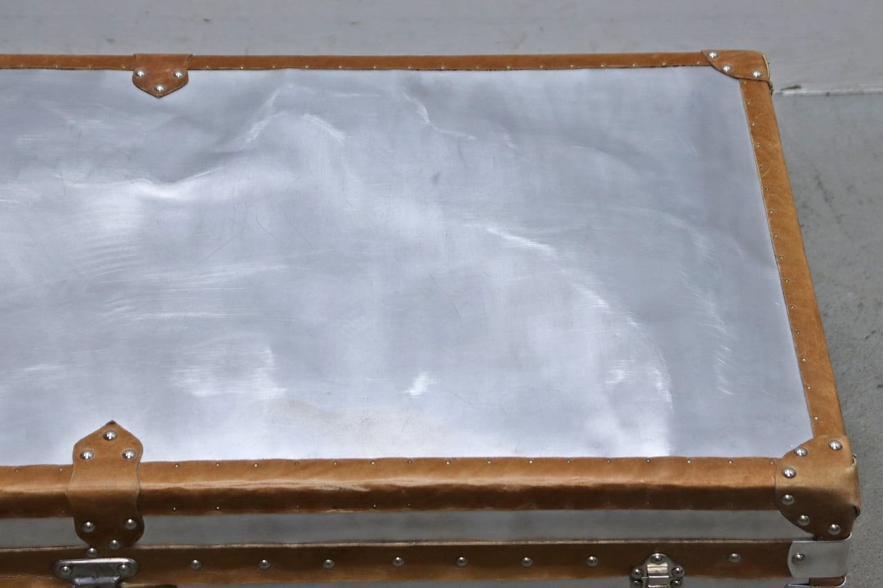 ヴィンテージ アルミ 本革 トランク ボックス 収納 衣装ケース センターテーブル RDK04001