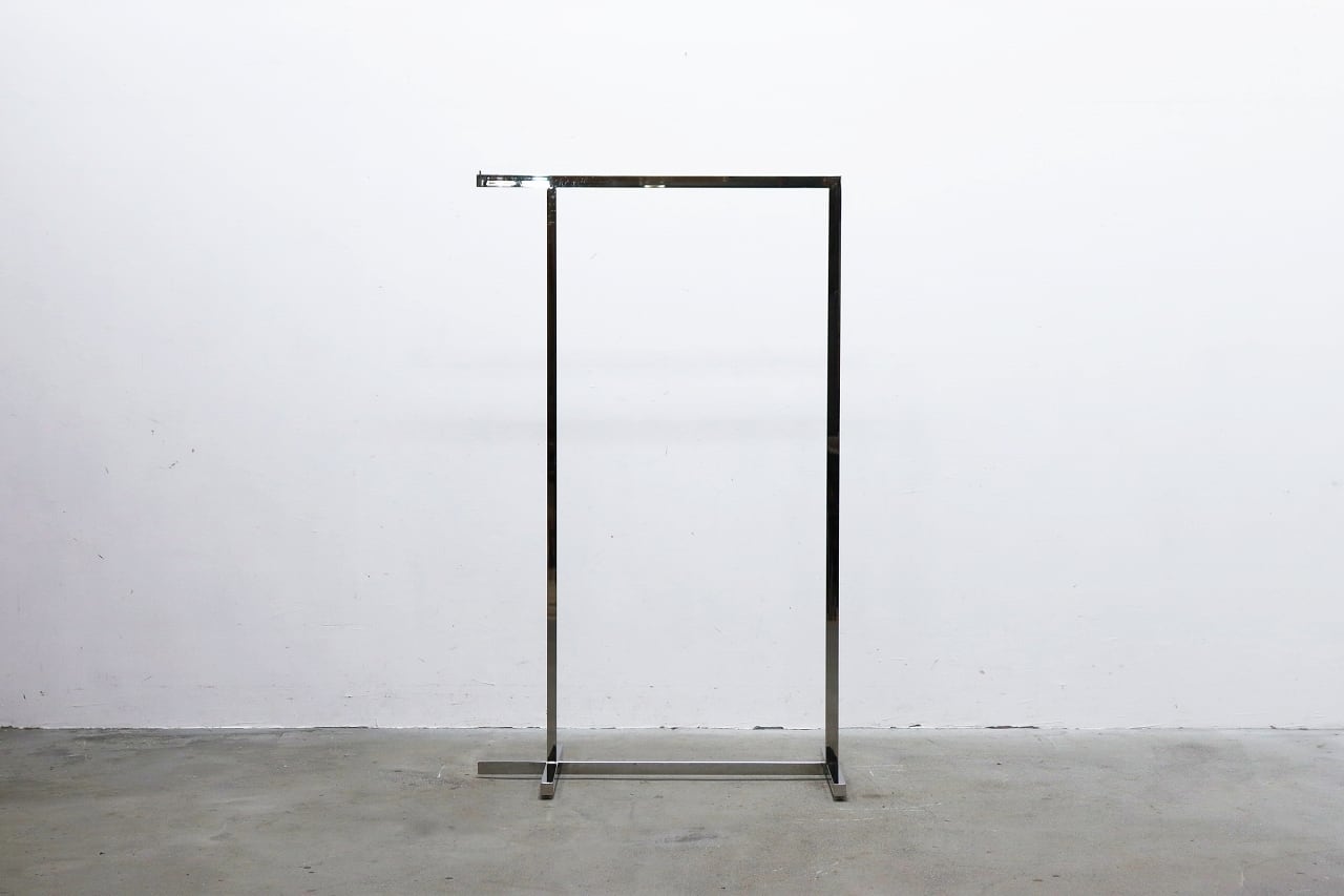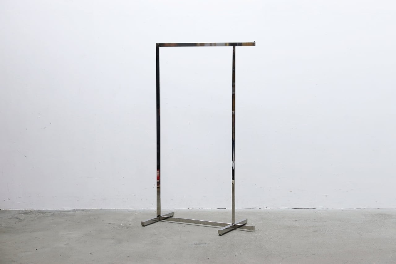 クロームメッキ加工が施されたモダンなハンガーラックです。