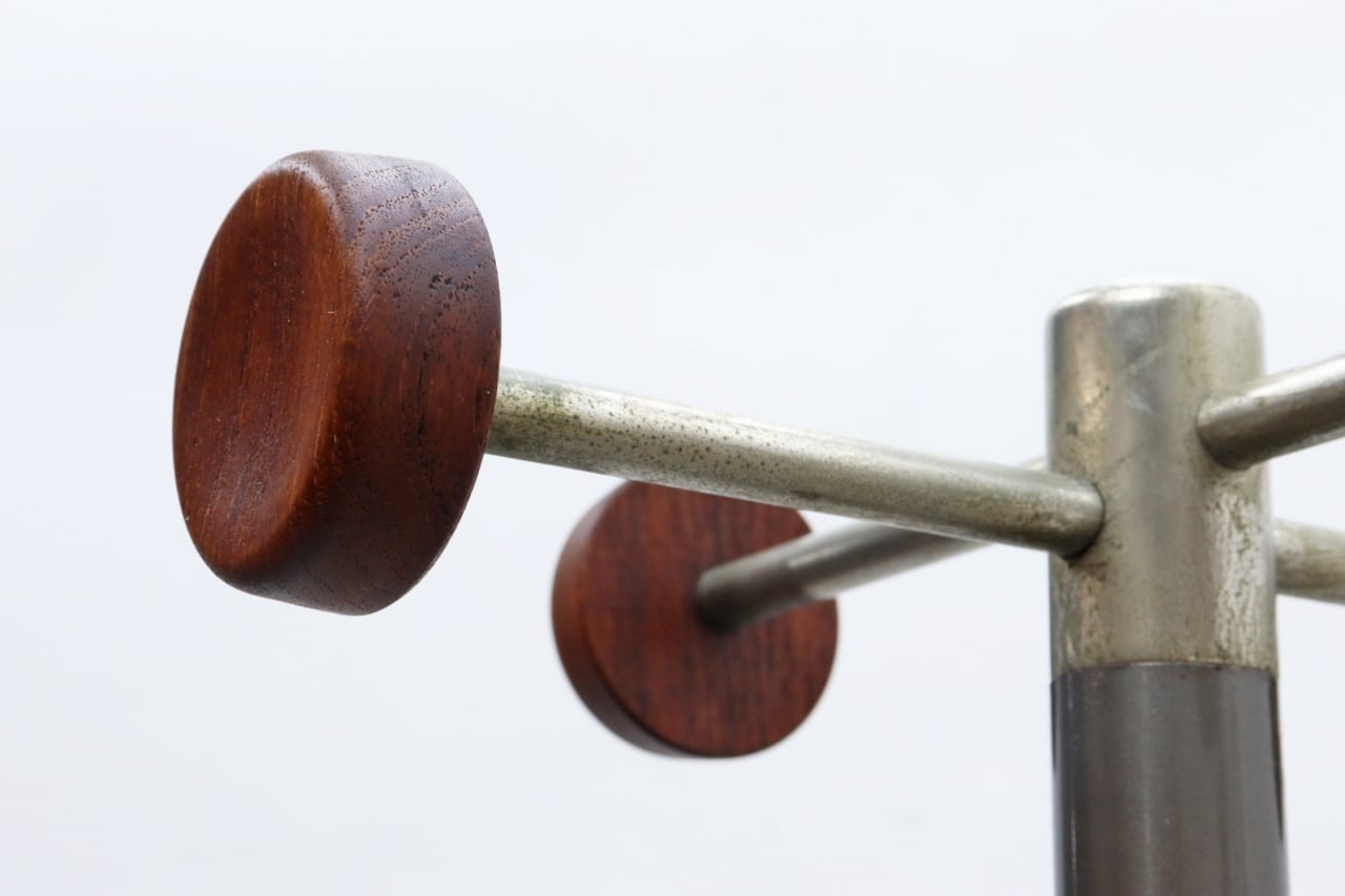 チーク材の円状のフックが印象的なヴィンテージコートスタンドです。