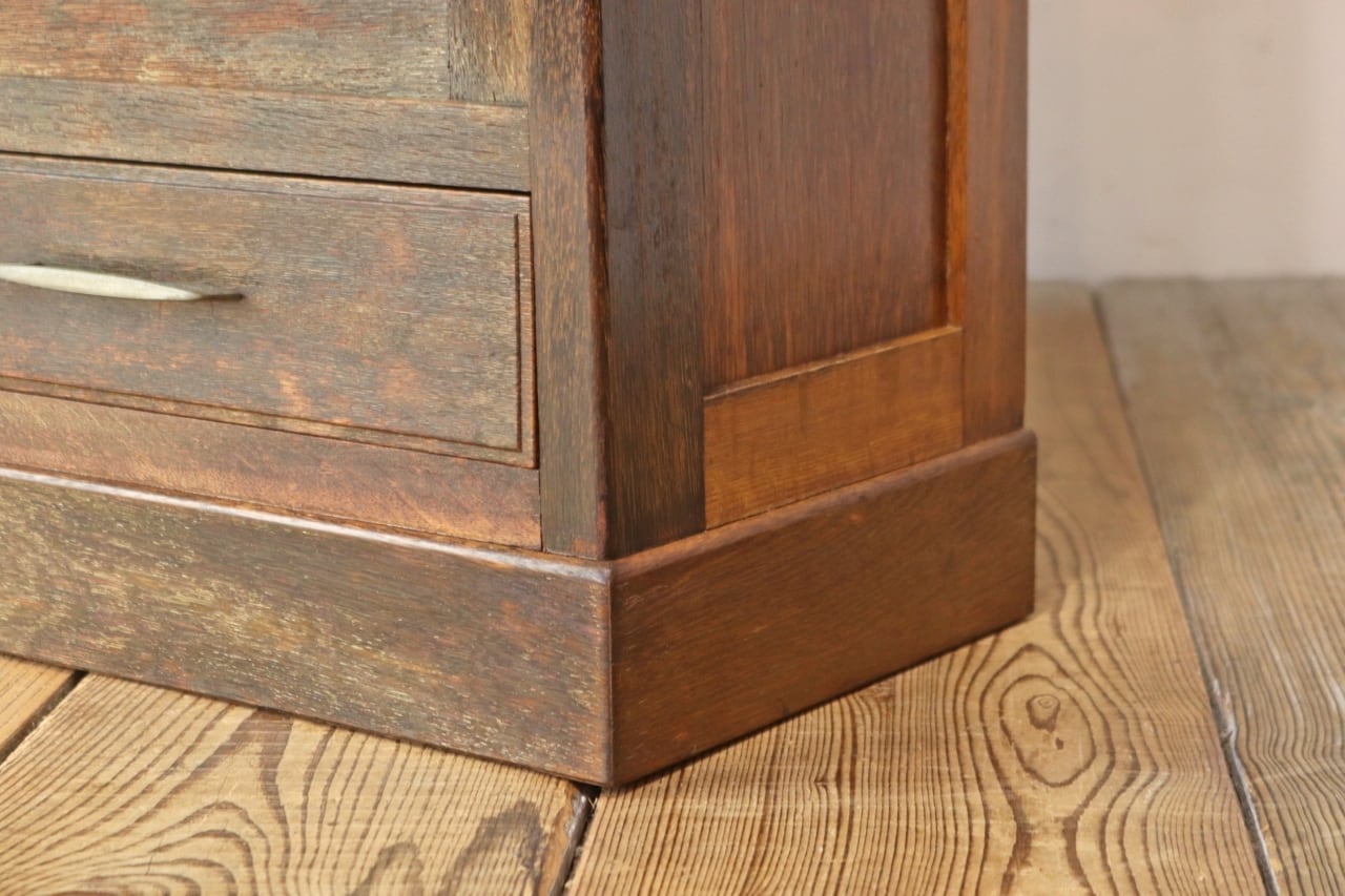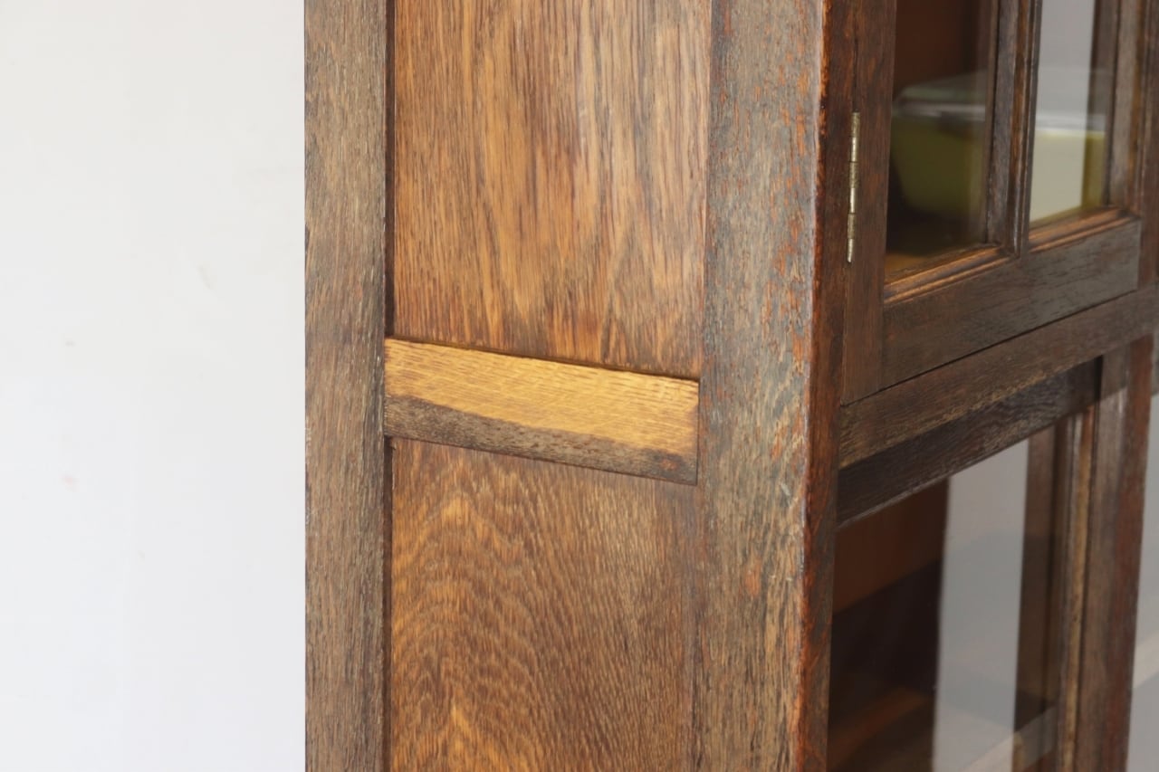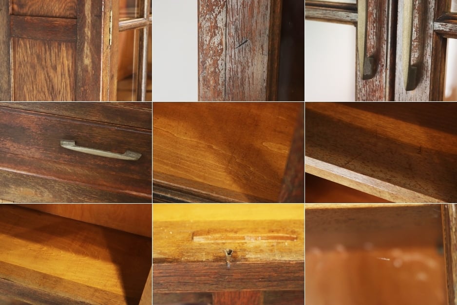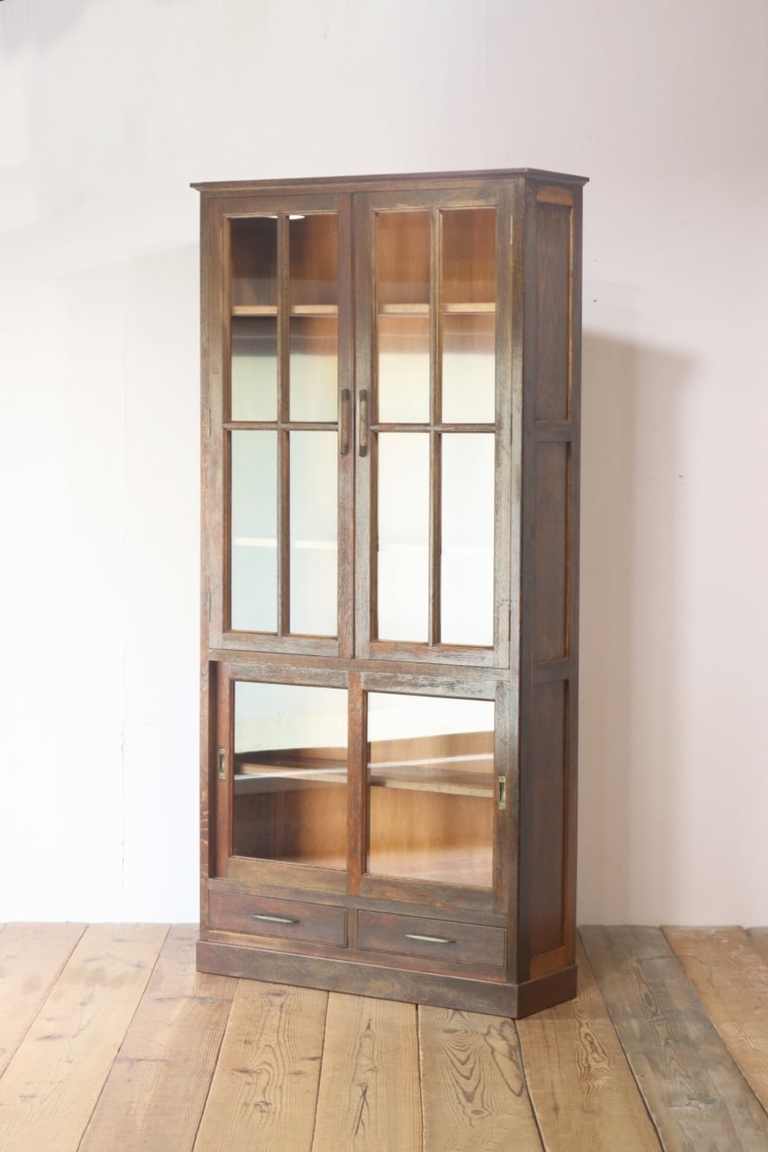 レトロ ガラスキャビネット 本箱 収納 食器棚 ラック オーク材 引き出し 抽斗 2杯 ヴィンテージ/RDD11073