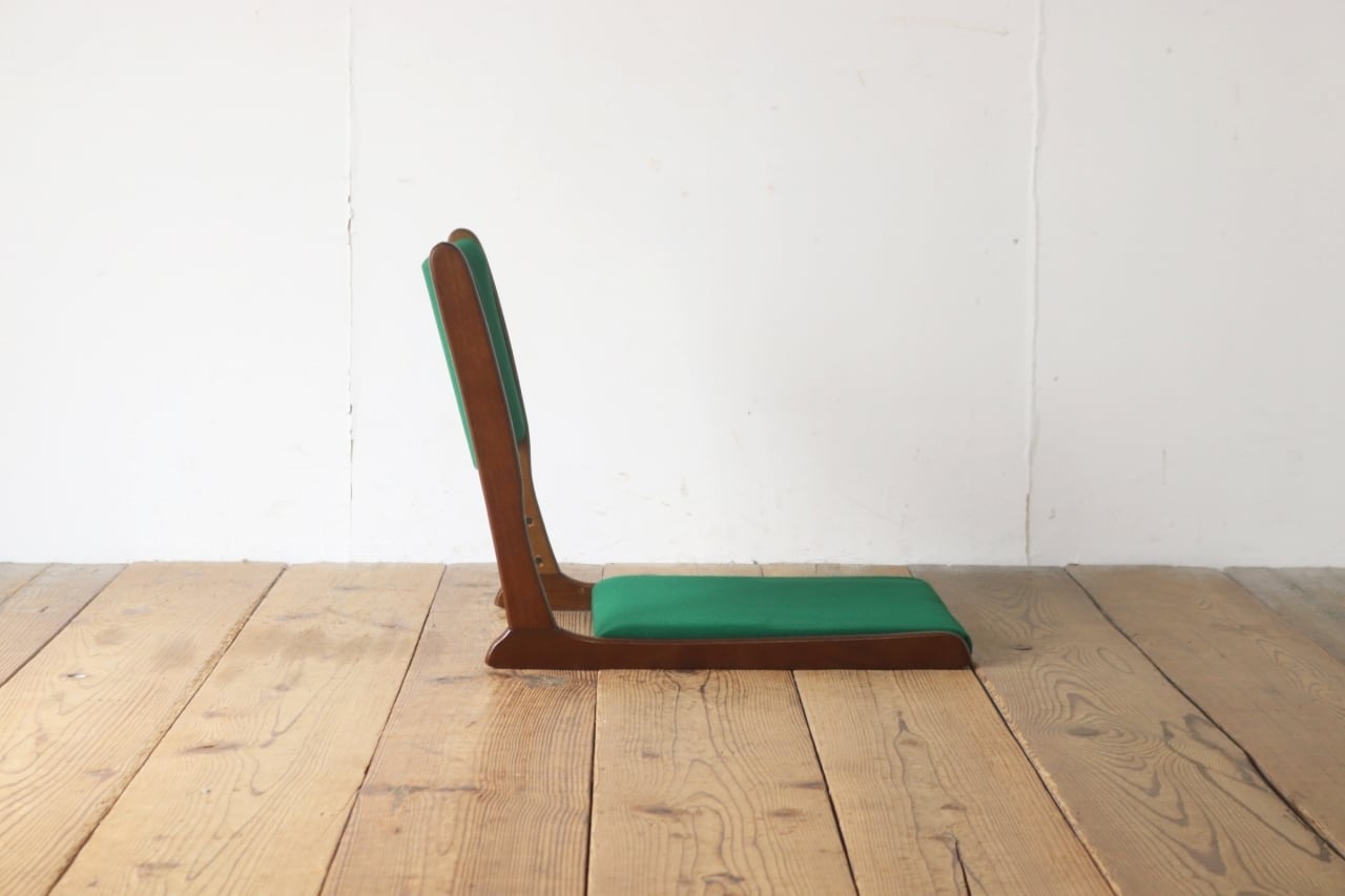 在庫4 レトロ 座椅子 床座 折り畳み 旅館 和室 イス ファブリック 緑 木製 店舗什器 ヴィンテージ 1脚/RDT07018