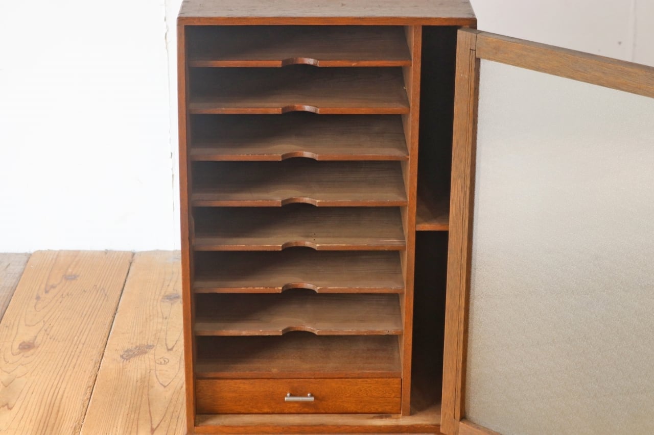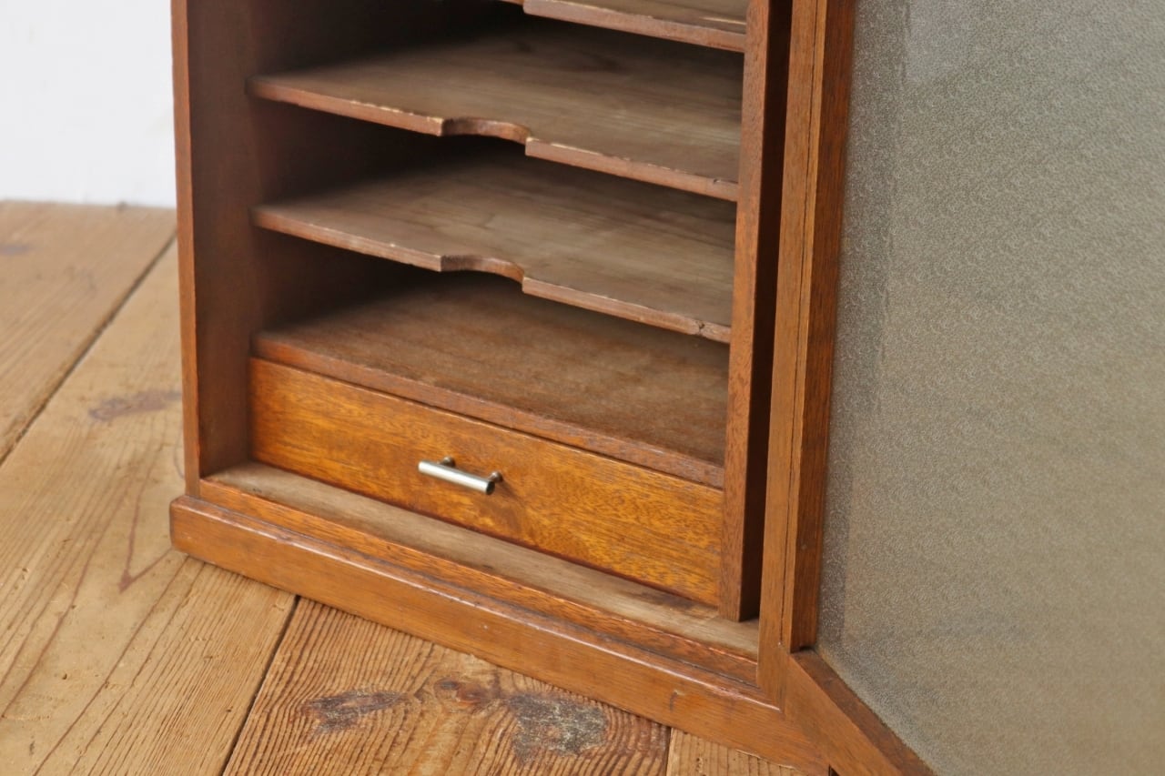 レトロ レコードラック ガラスキャビネット ケース 収納 ダイヤガラス 仕切り 木製 ラワン材 ヴィンテージ/RDT07017