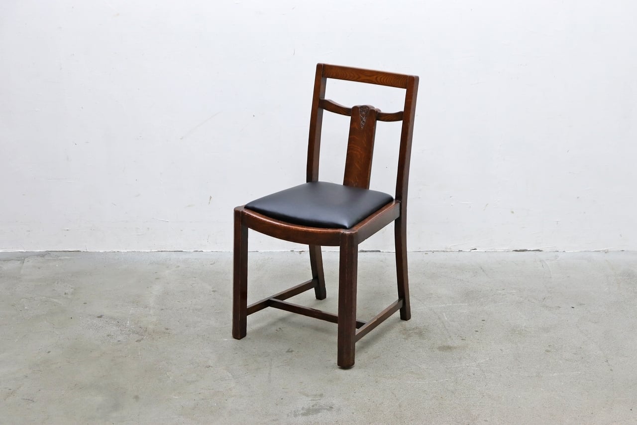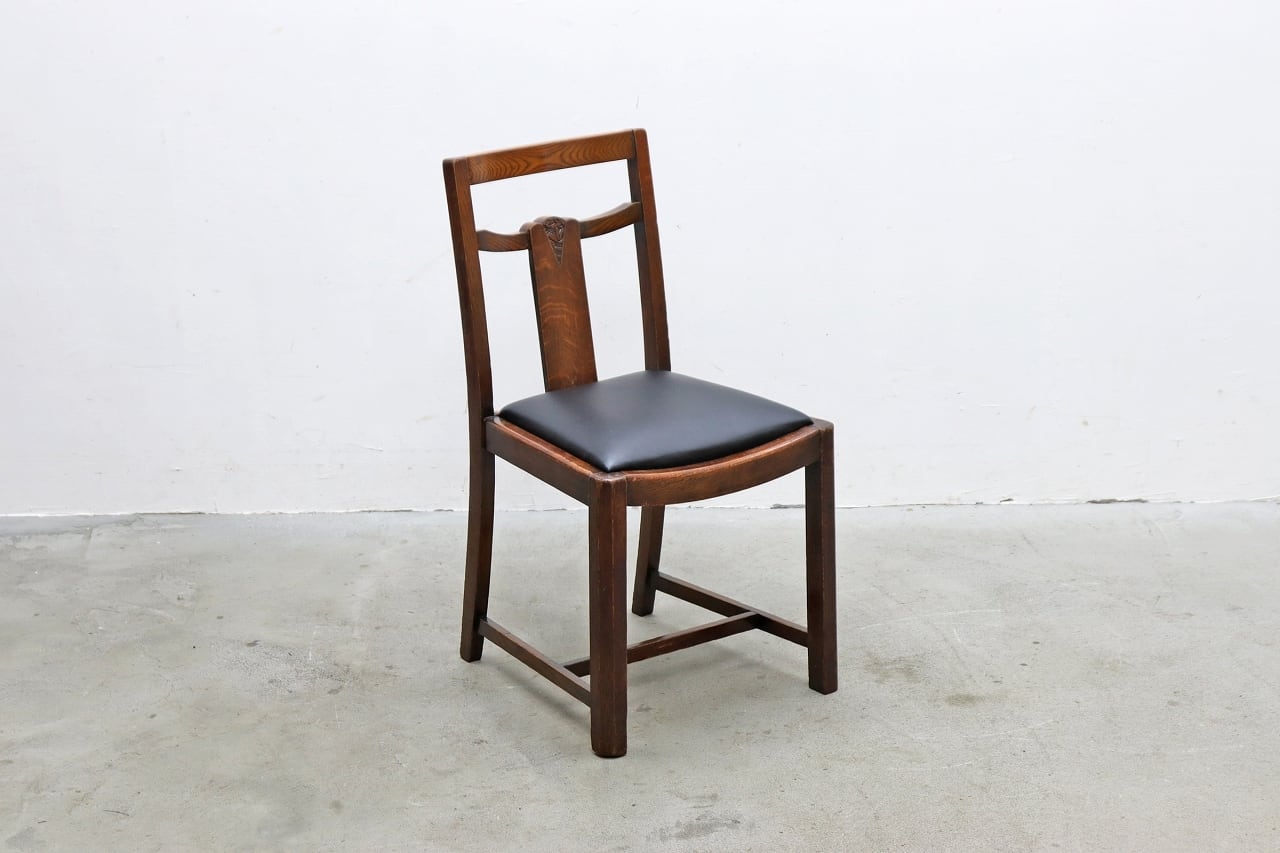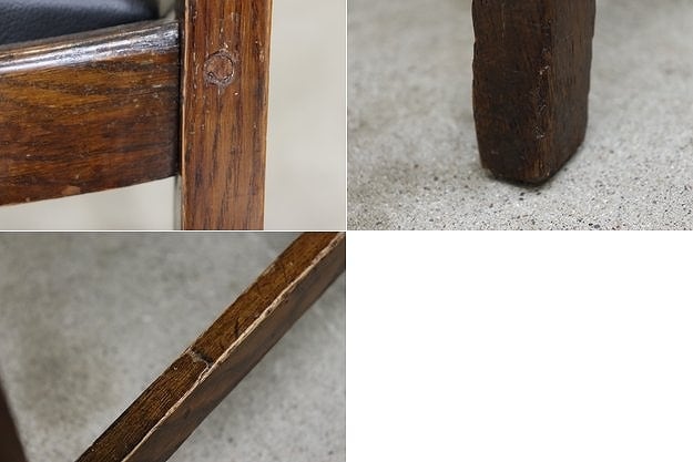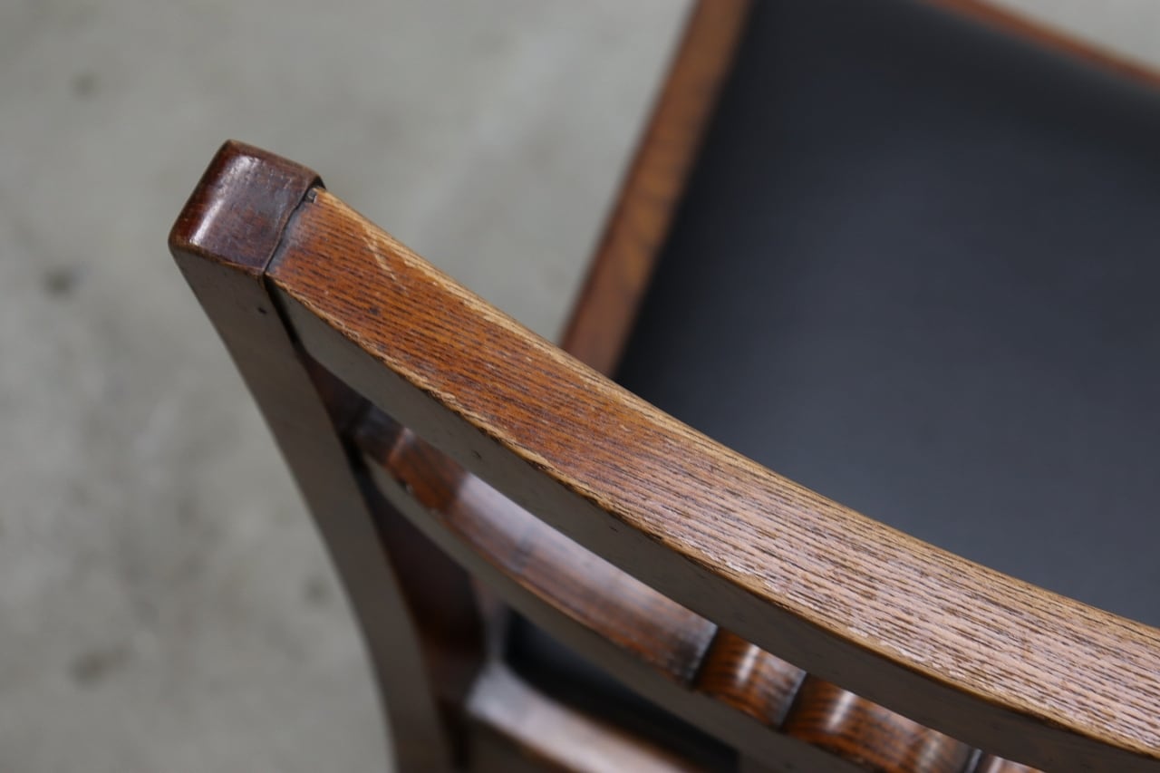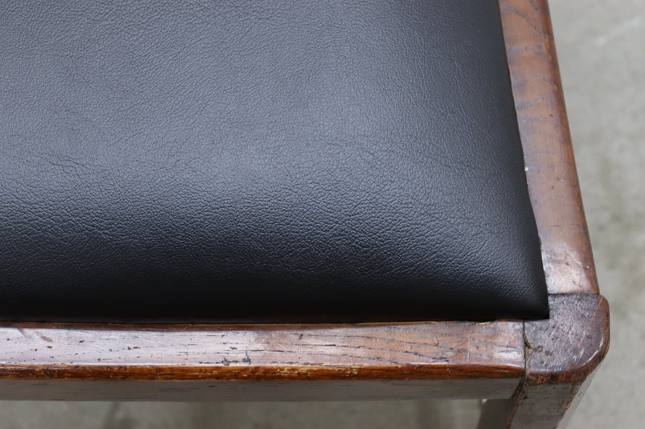 フレームにオーク材を使用、座面は合皮に張替済みで良好な状態です。
