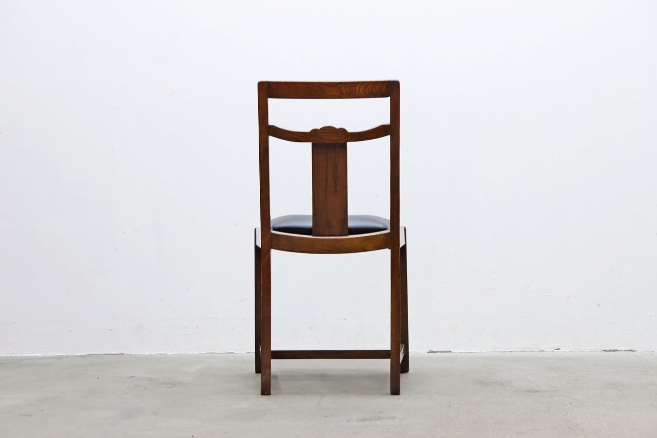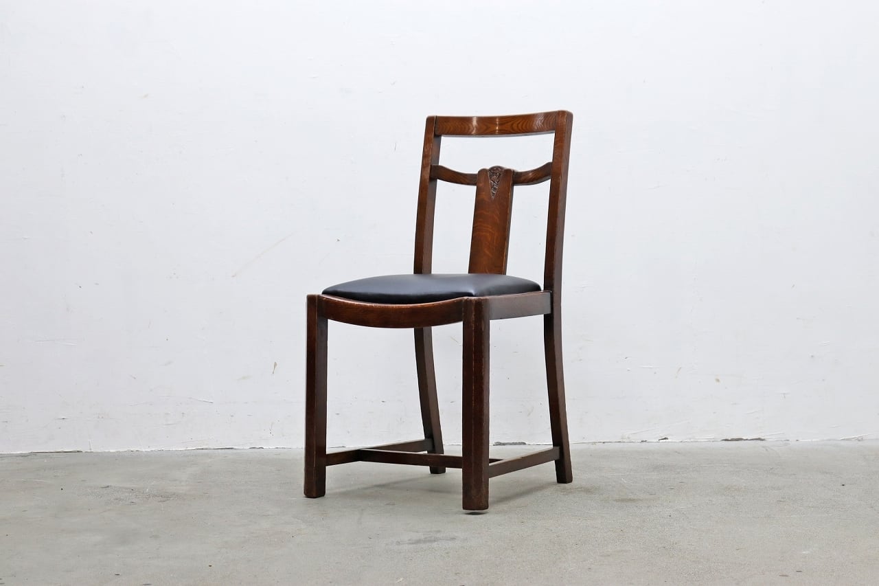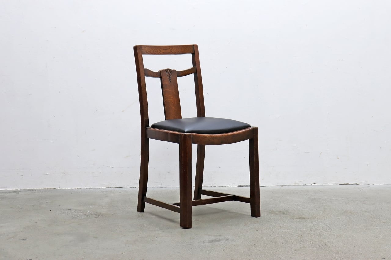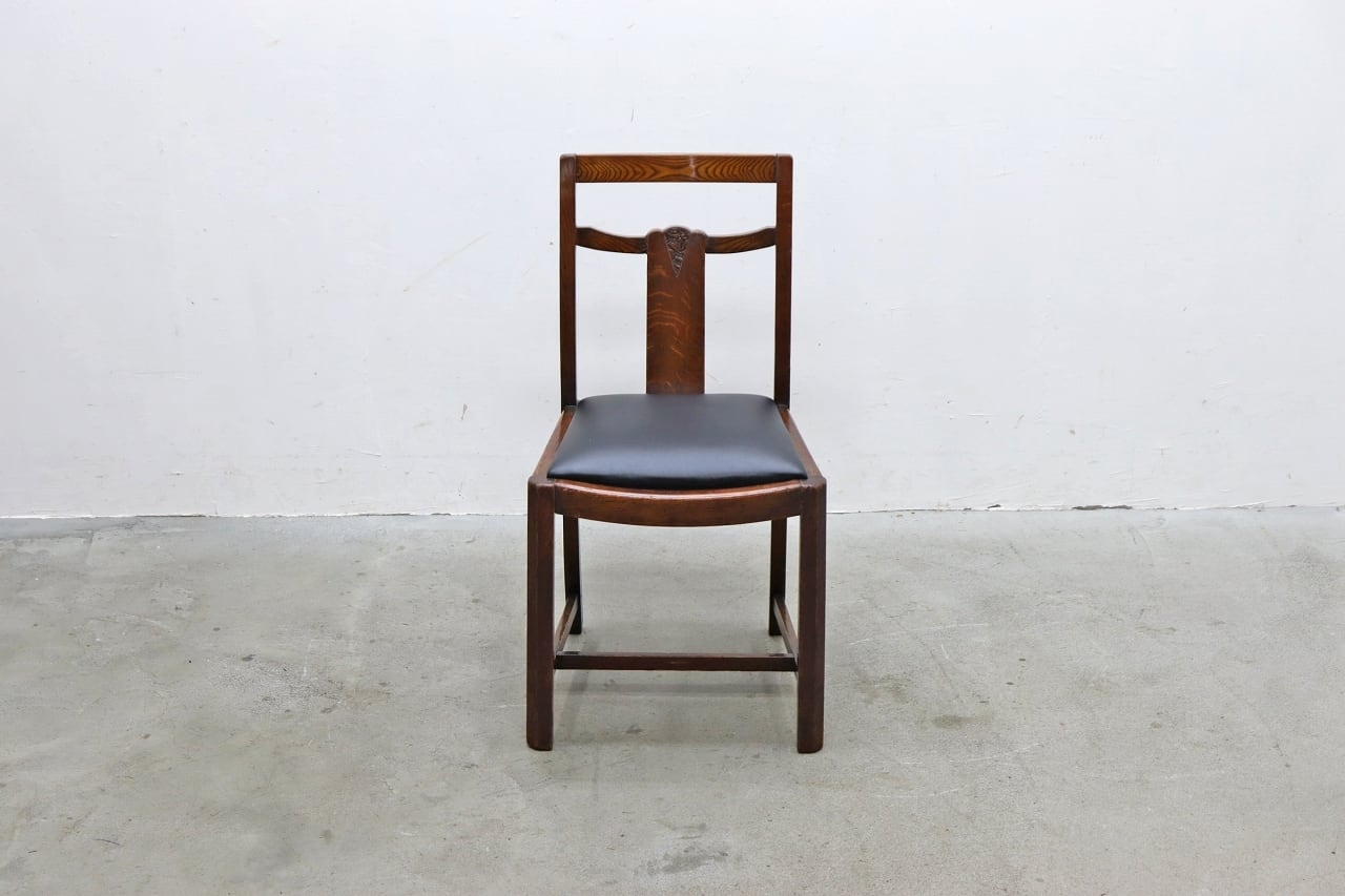 フレームにオーク材を使用、座面は合皮に張替済みで良好な状態です。