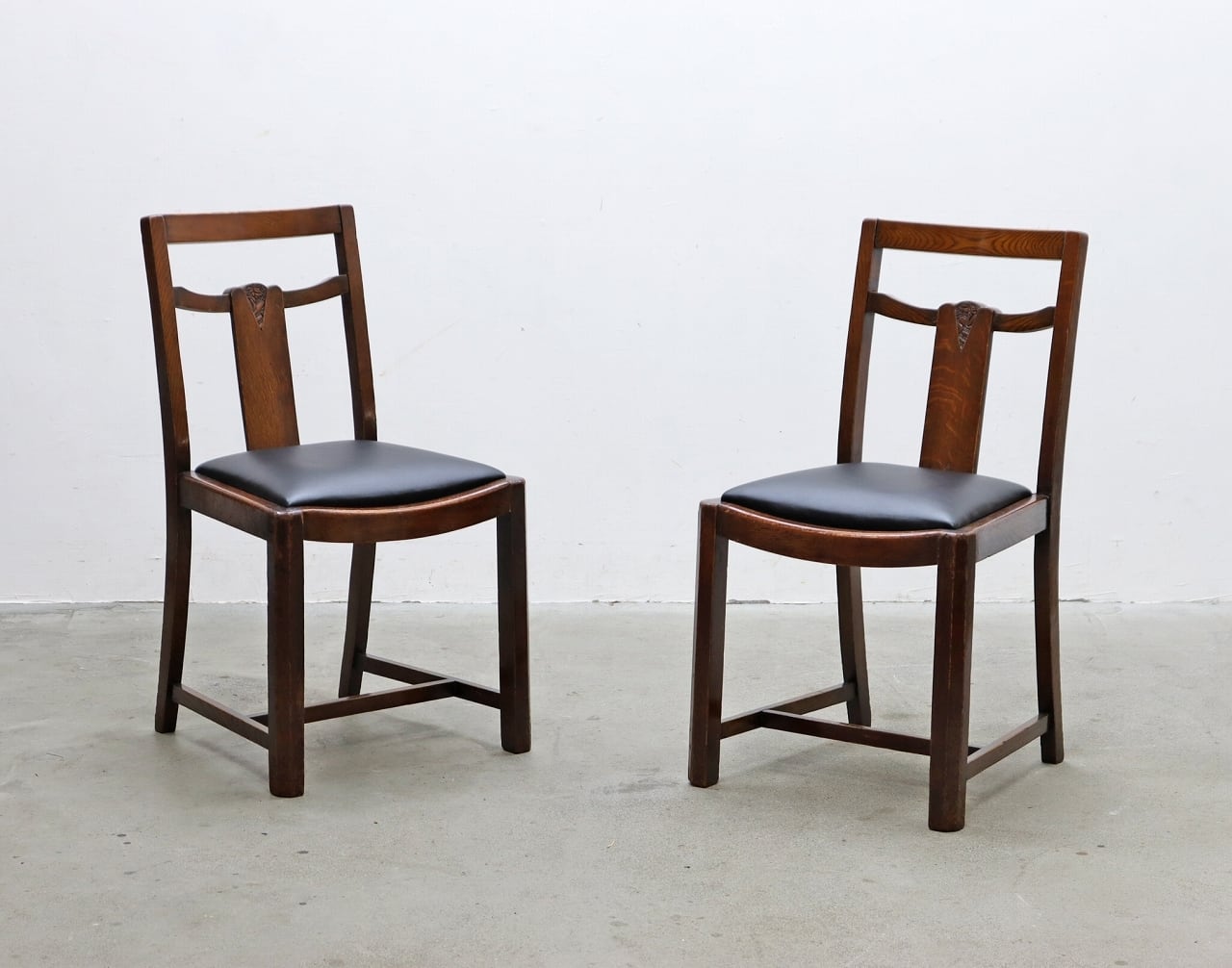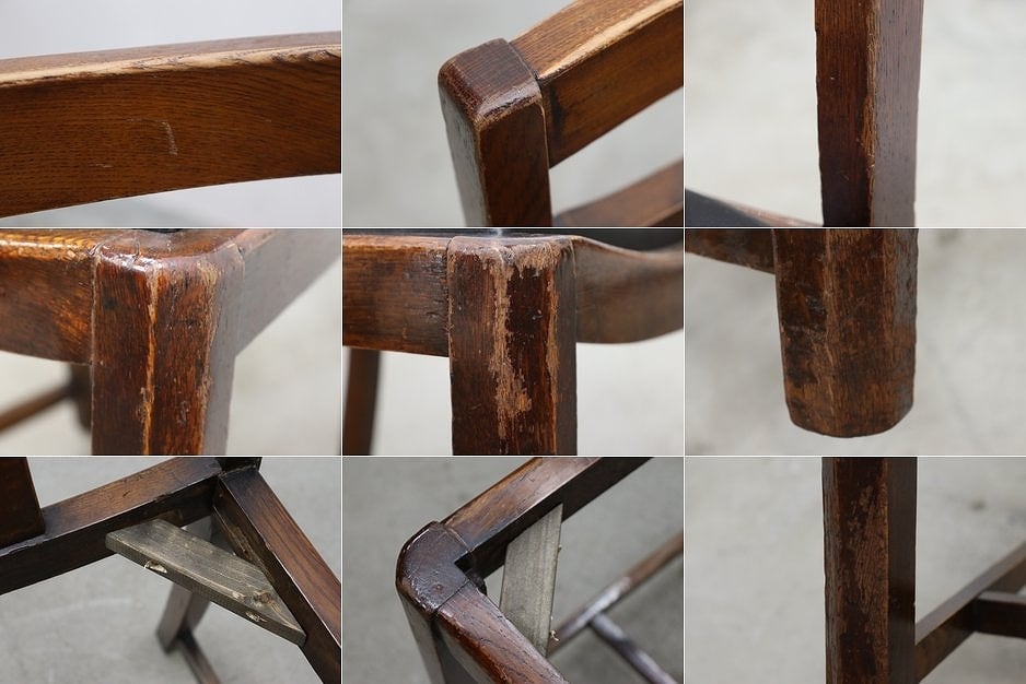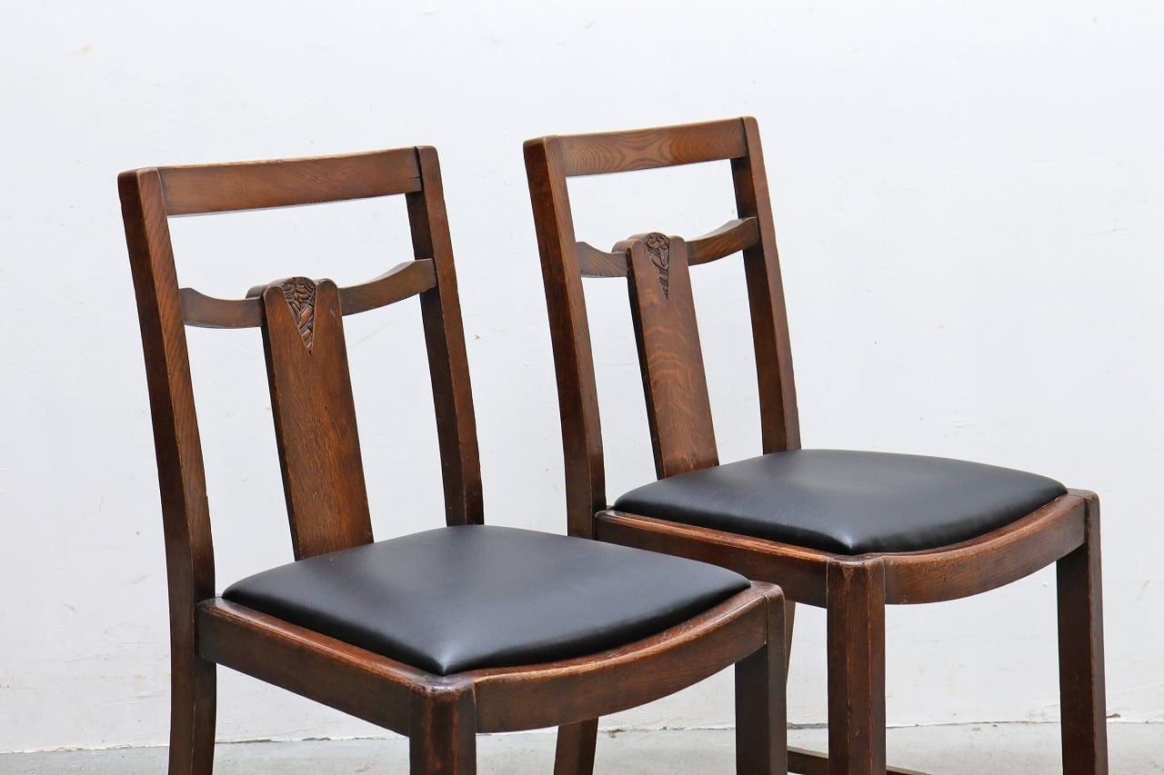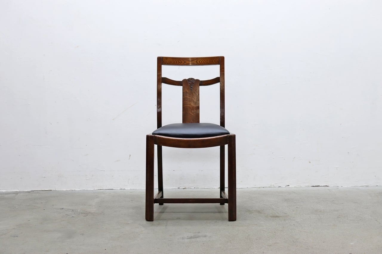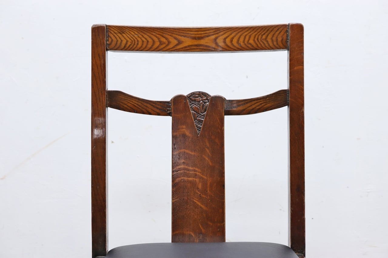 フレームにオーク材を使用、座面は合皮に張替済みで良好な状態です。