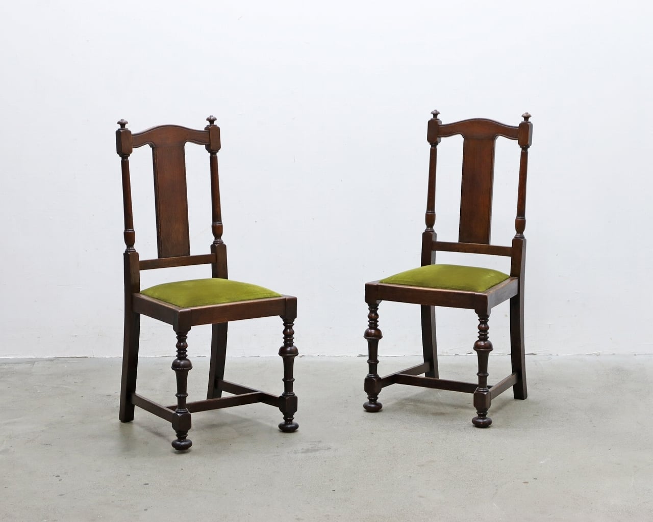 グリーンのモケット座面が落ち着いた印象です。