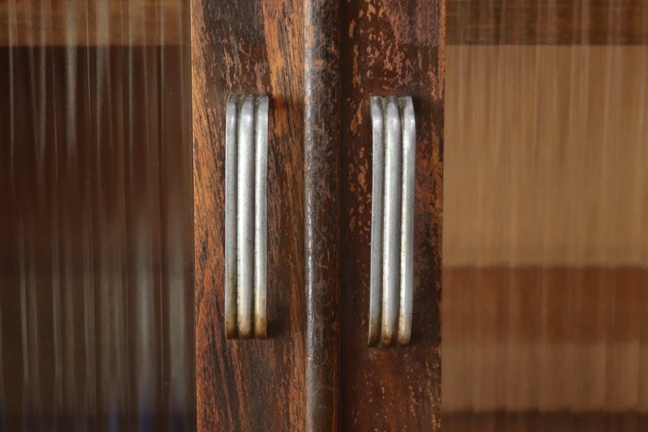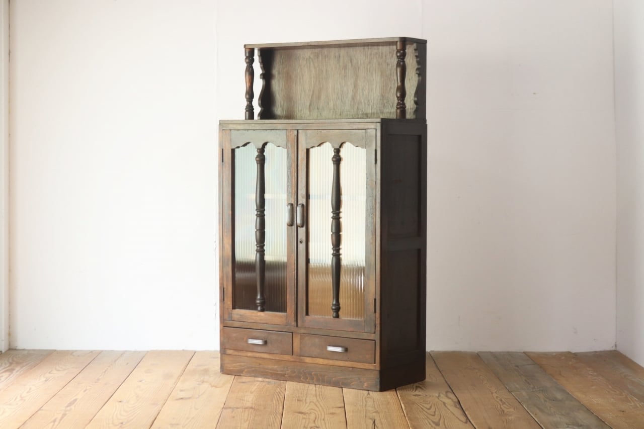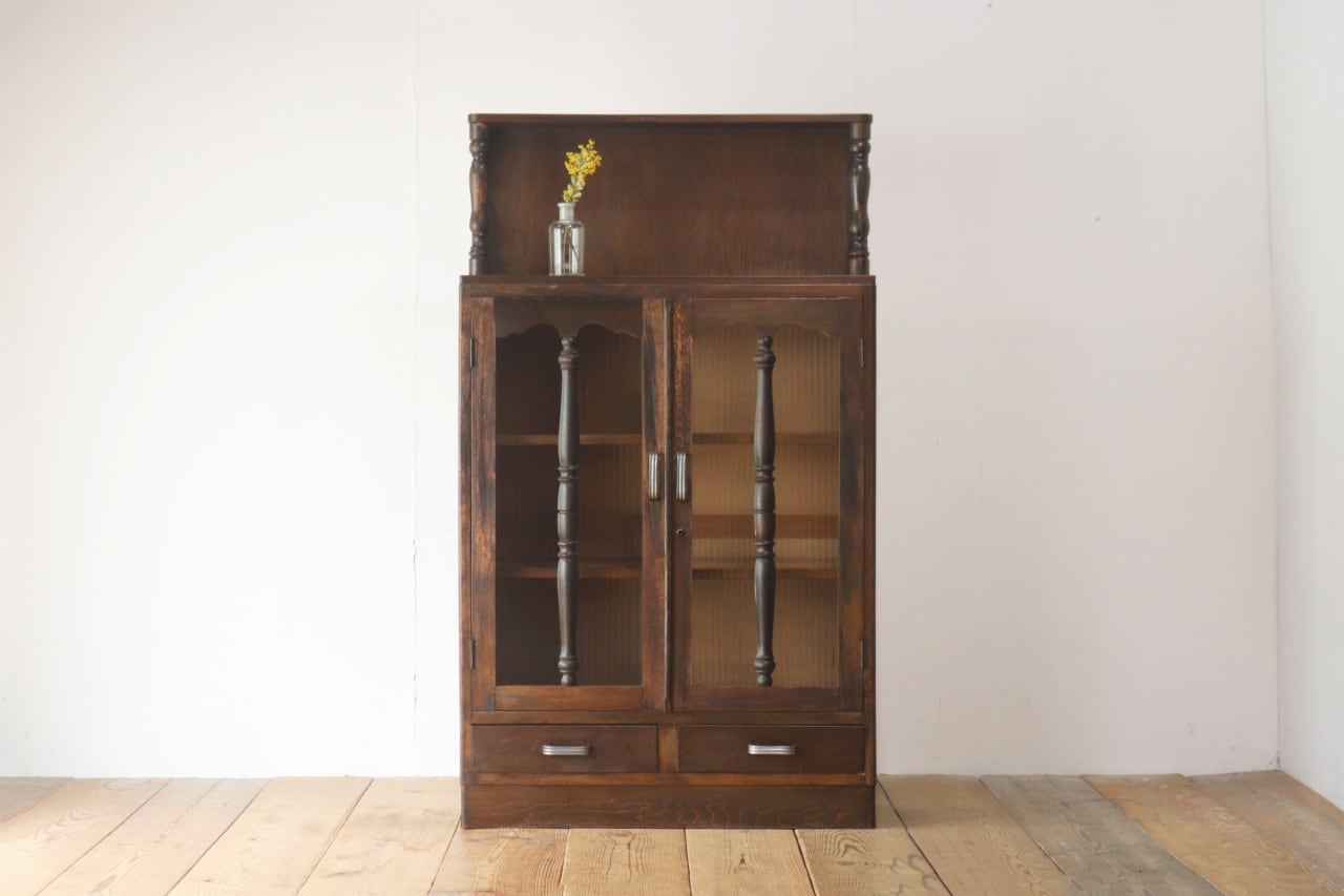 レトロ ガラスキャビネット 本箱 収納 食器棚 ラック モールガラス 引き出し 抽斗 2杯 木製 ヴィンテージ/RDK18117