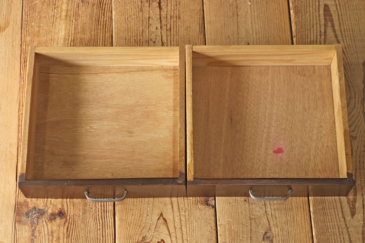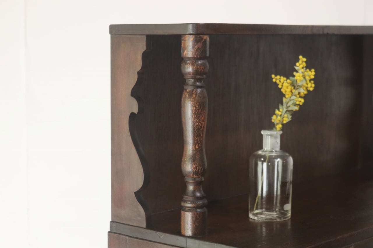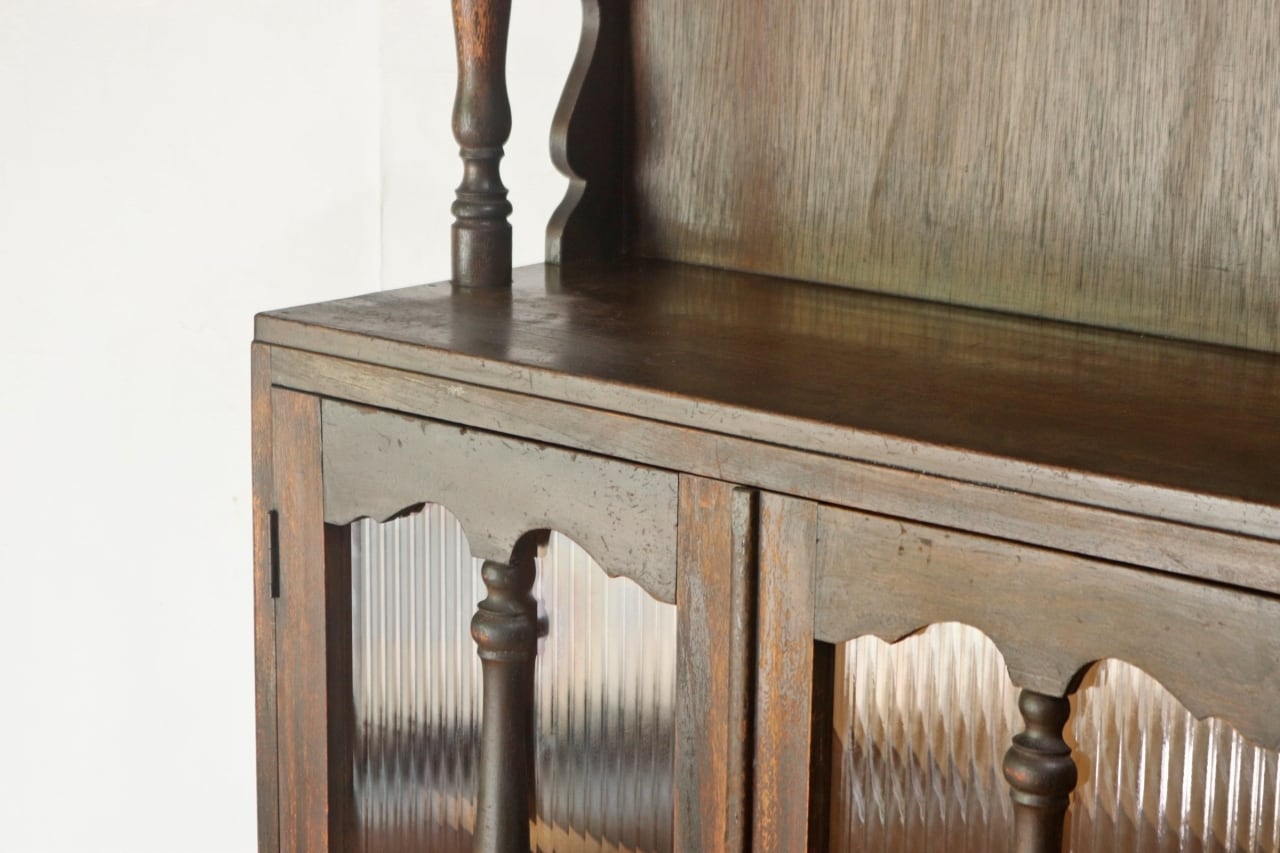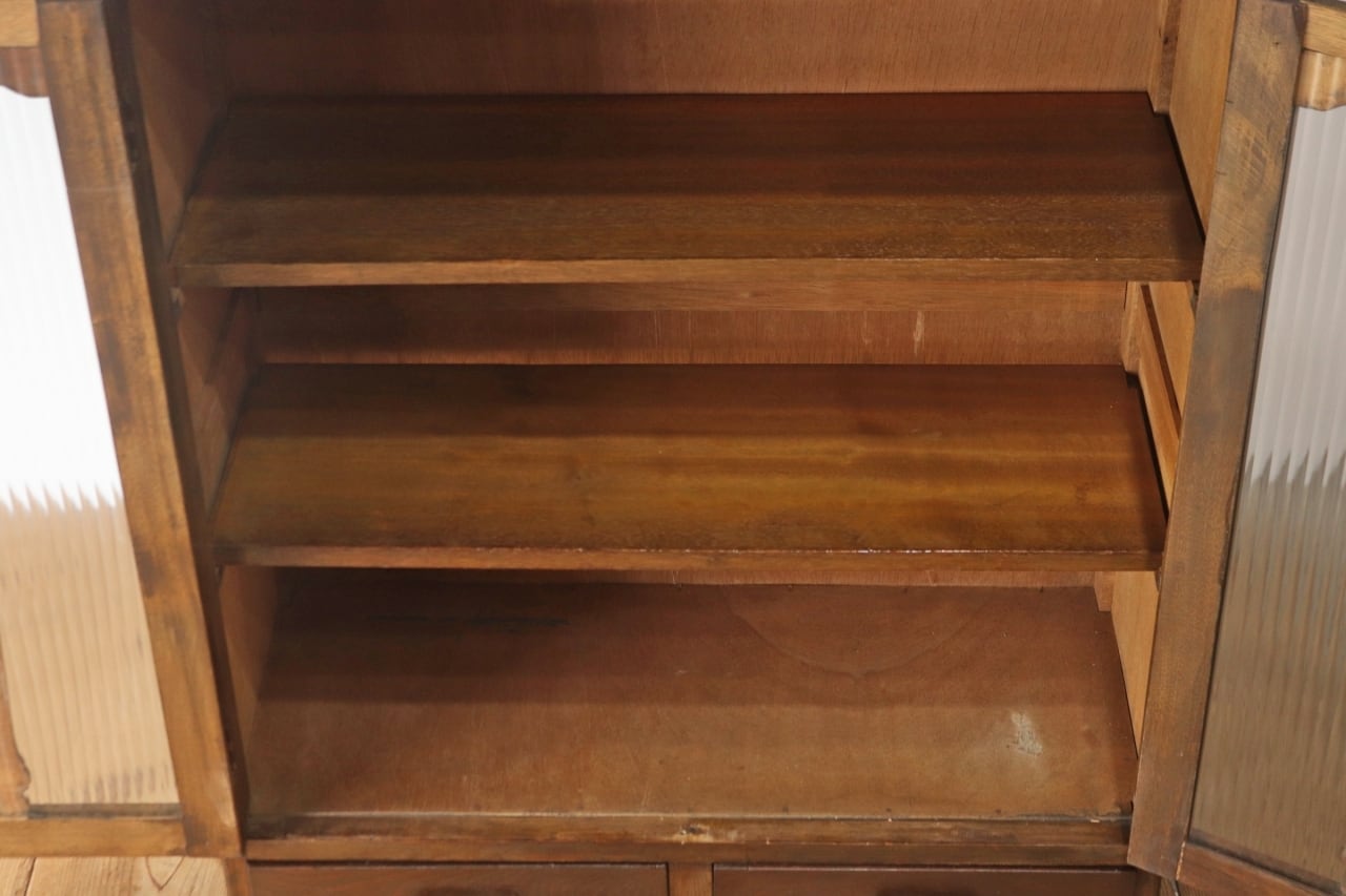 レトロ ガラスキャビネット 本箱 収納 食器棚 ラック モールガラス 引き出し 抽斗 2杯 木製 ヴィンテージ/RDK18117