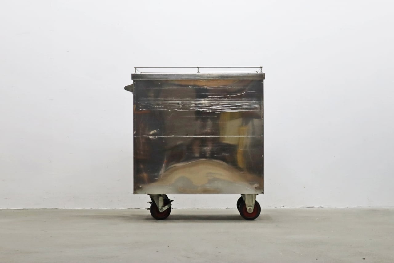 ストッパー付きの大型キャスターの付いた堅牢性の高い業務用ワゴン。