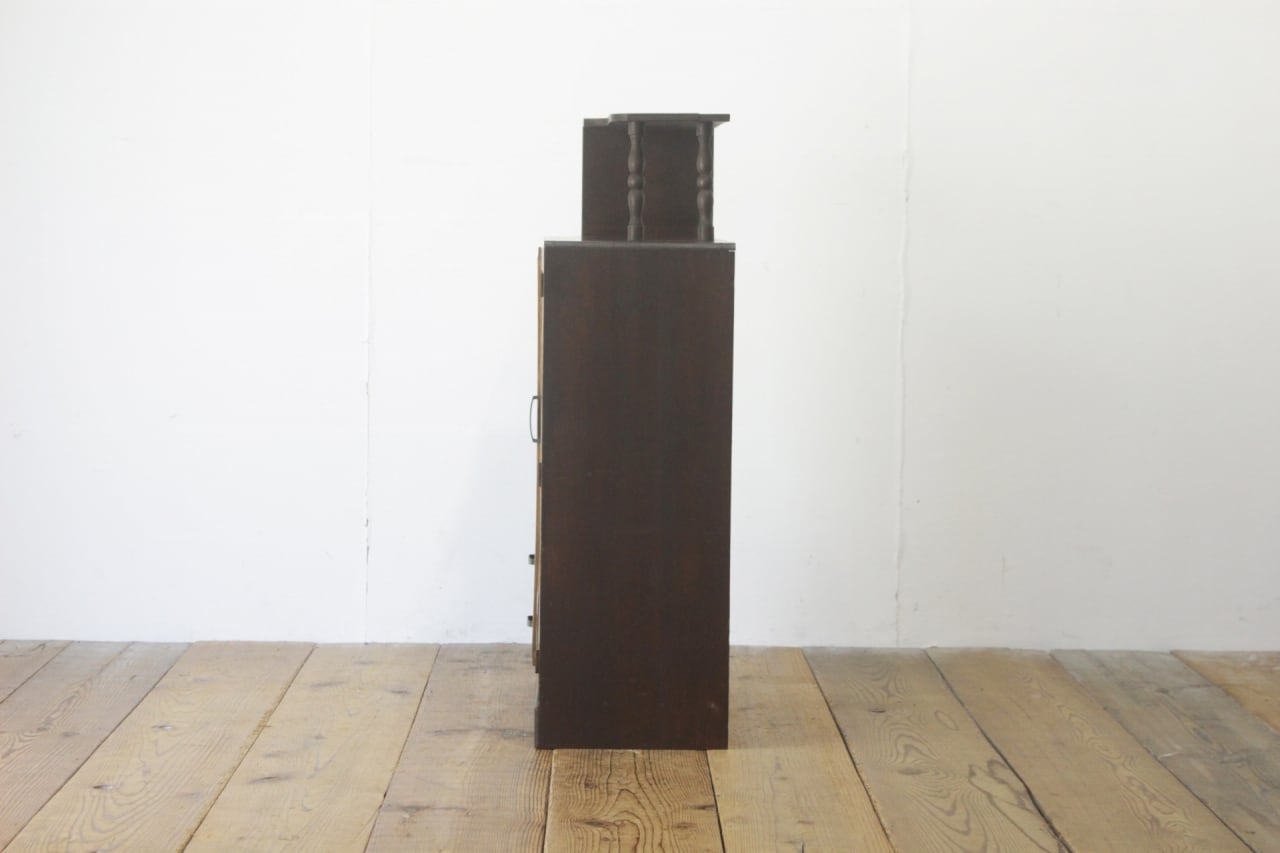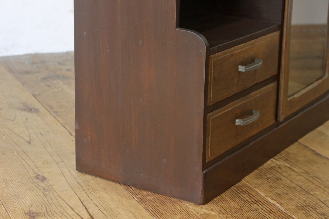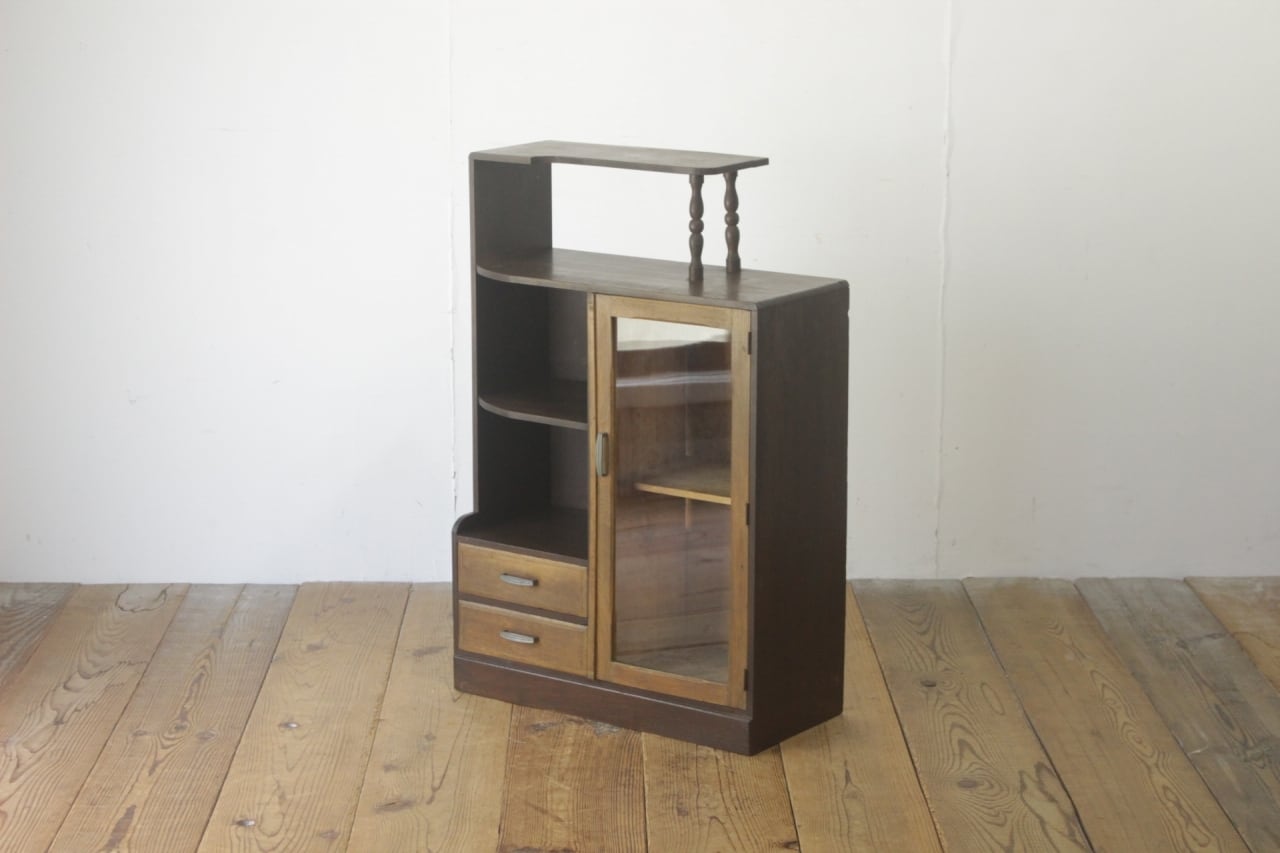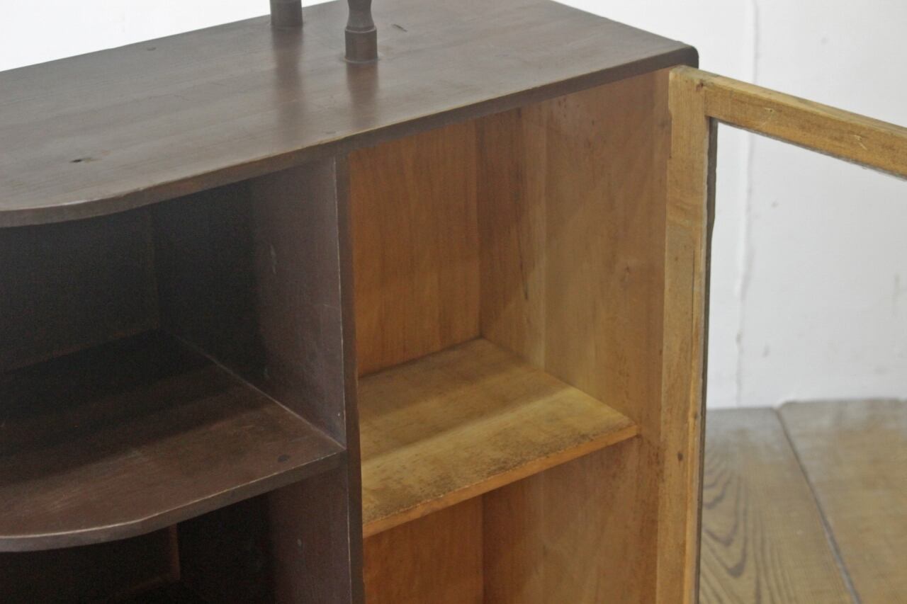 レトロ 小振り 飾り棚 ガラスキャビネット 収納 本箱 左右非対称 木製 ヴィンテージ/OJT08033
