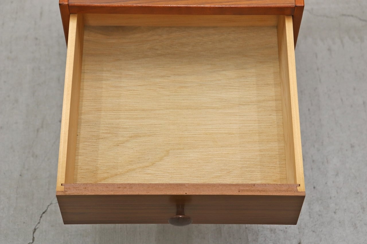 本体にチーク柄シートを使用したレトロな小引き出しです。